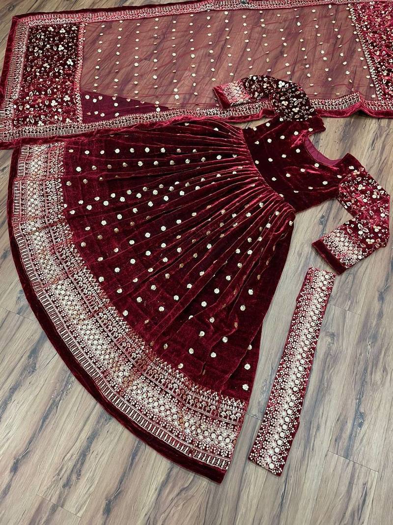 | Product Description | Beautiful Designer Gown On Heavy Viscose Velvet Fabric With Inner And Thread With Sequence Work And Dupatta On Soft Net Fabric With Thread And Sequence Work. Fabric Details.