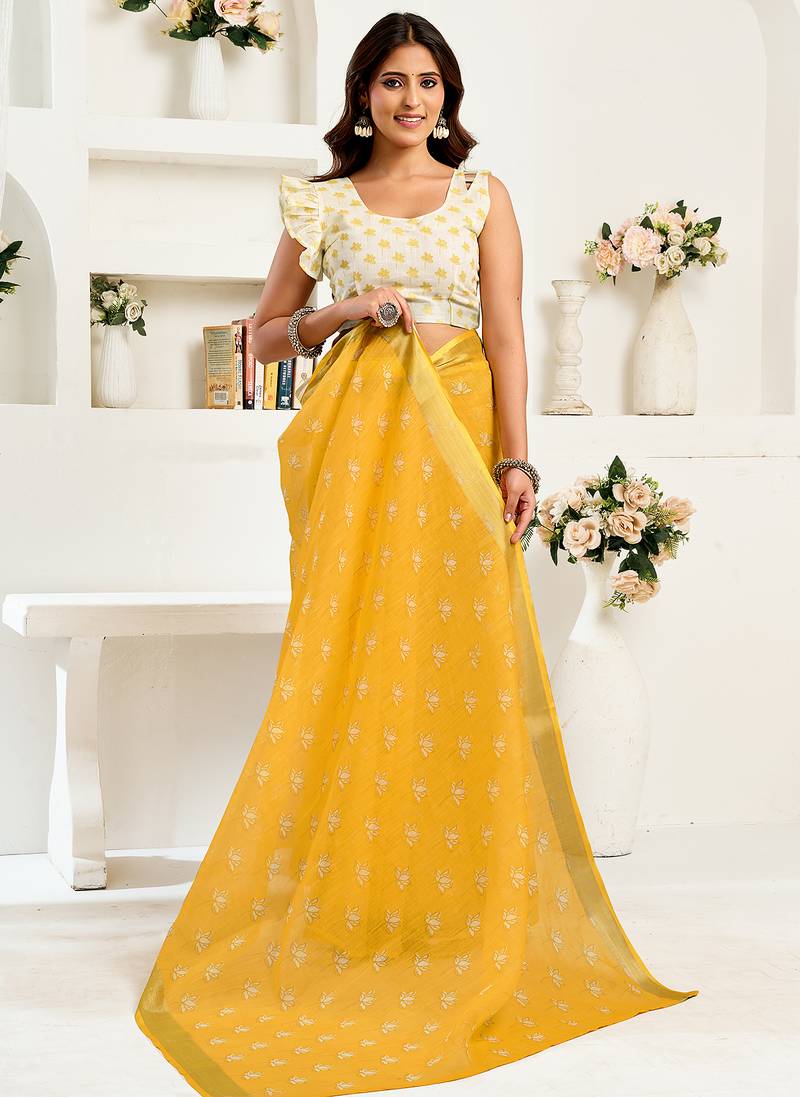 | Product Name | Yellow Digital Printed Linen Ready To Wear Designer Saree With Unstitched Blouse | |