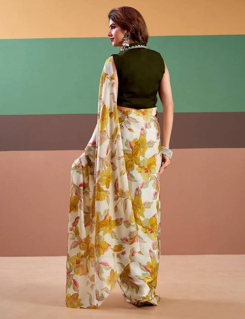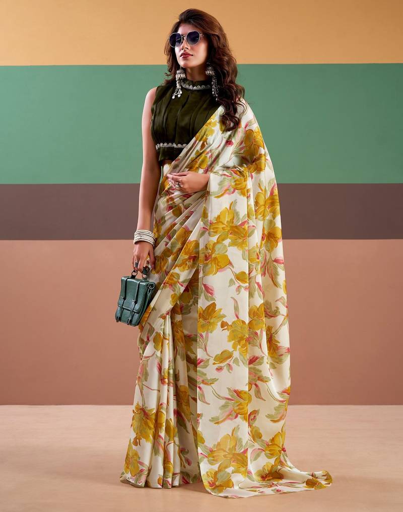 | Product Name | Yellow Satin Silk Floral Printed Saree With Stitched Blouse | |
