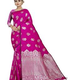 Pink color art silk silver zari work saree with blouse peice