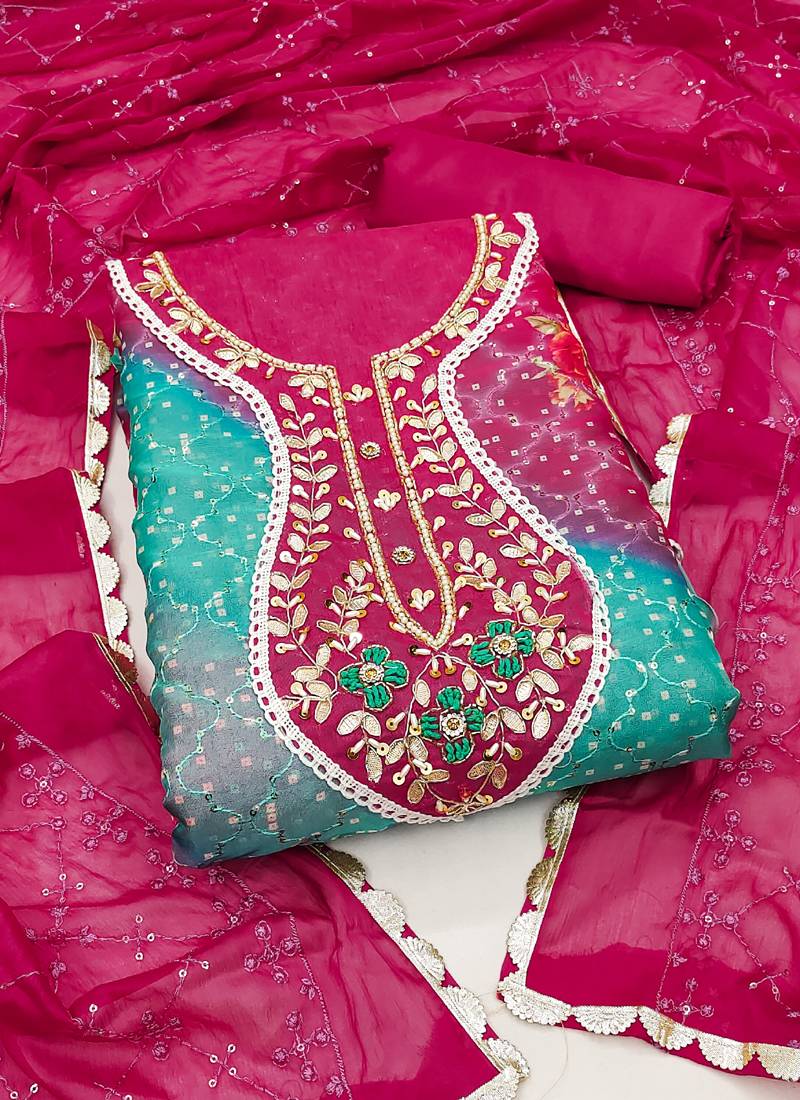 | Product Name | Multicolor Organza Women Embellished & Embroidered Unstitched Dress Material | |