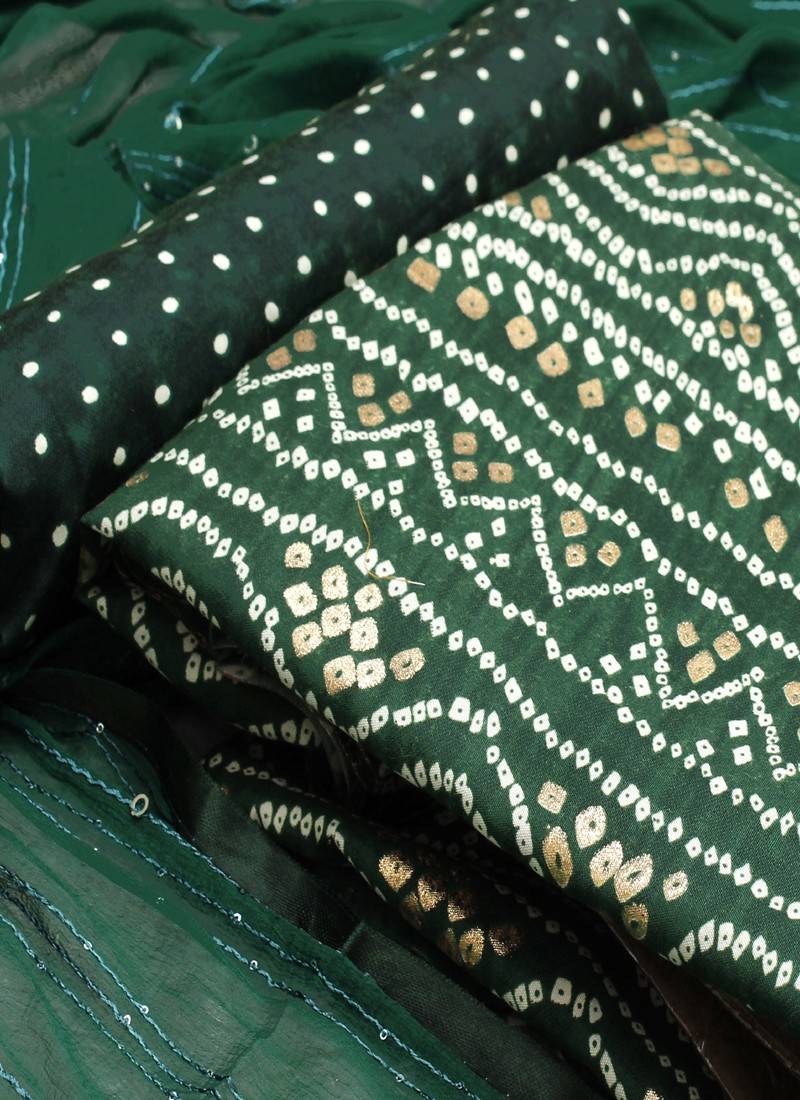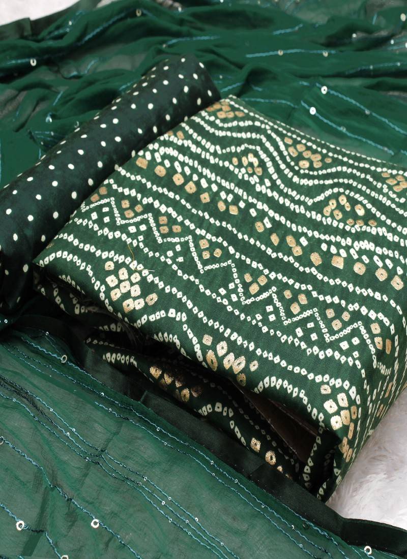 Green indo foil print suit with crosset dupatta unstitched