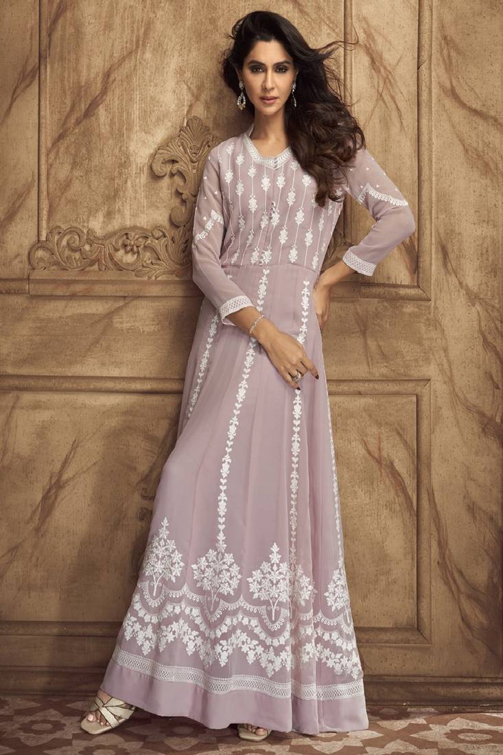 Onion pink lucknowi pure georgette anarkali gown stitched
