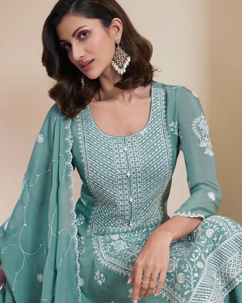 | Product Name | Sky Embroidered Chinon Semi Stitched Pakistani Salwar Suit | |