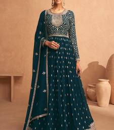 Teal sequence embroidery festive anarkali suit semi stitched