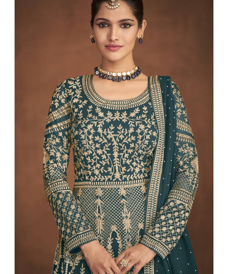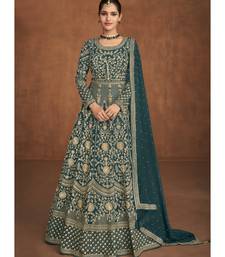 Turquoise embroidered designer wedding anarkali gown semi stitched