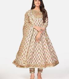 | Product Description | Printed & Hand Work Anarkali Cotton Beige Kurta,Pant With Dupatta Has A Round Neck, 3/4 Sleeve, Printed & Hand Work, Flared Hem, No Slit. It Will Keep You Comfortable For A Party Wear Look. Pair It With High Heels And Look Effortlessly Chic And Fashionable. |