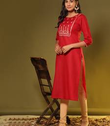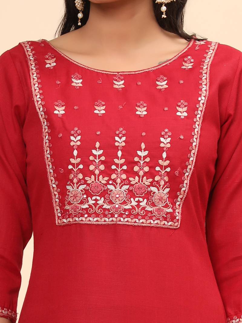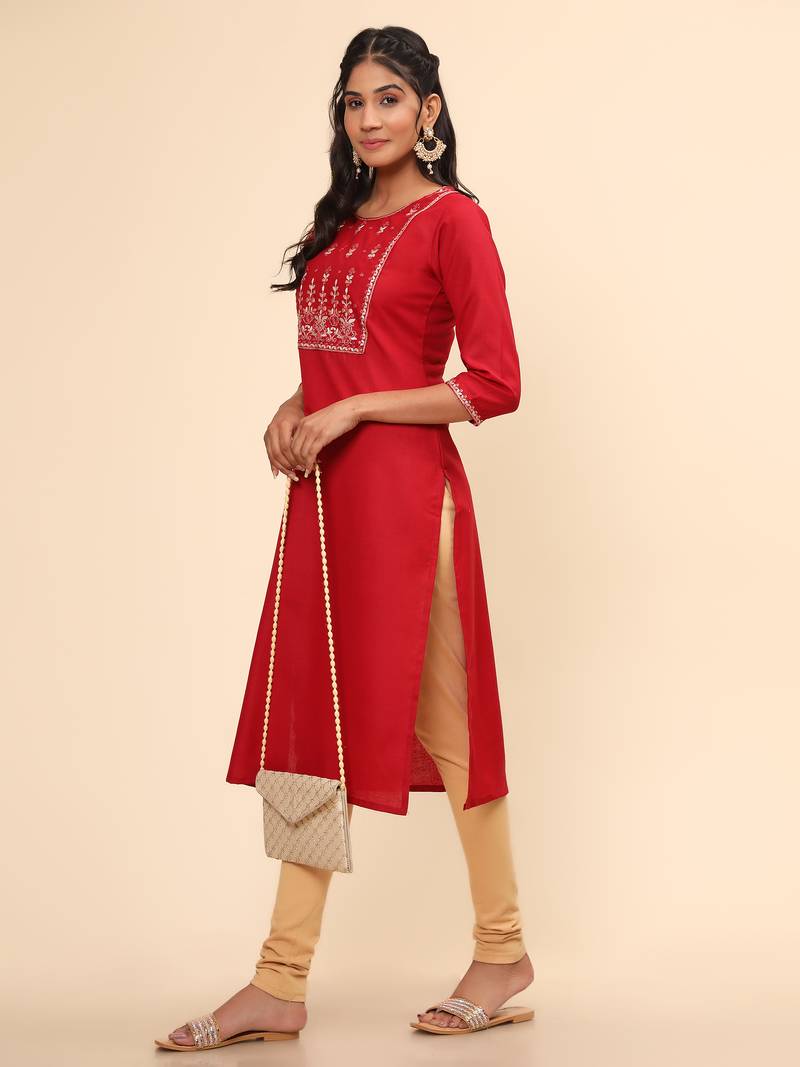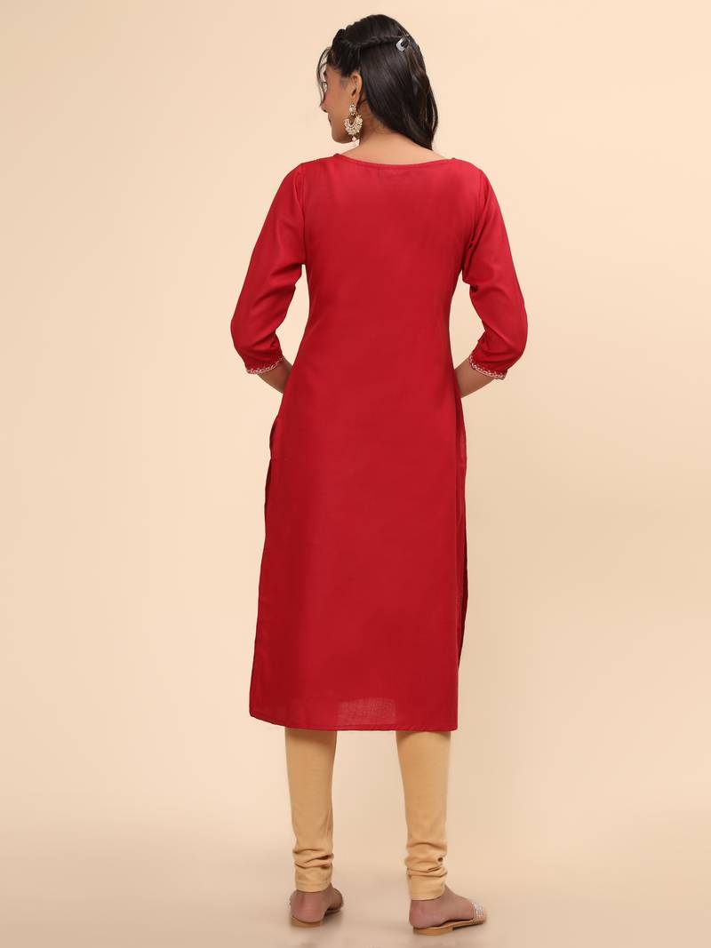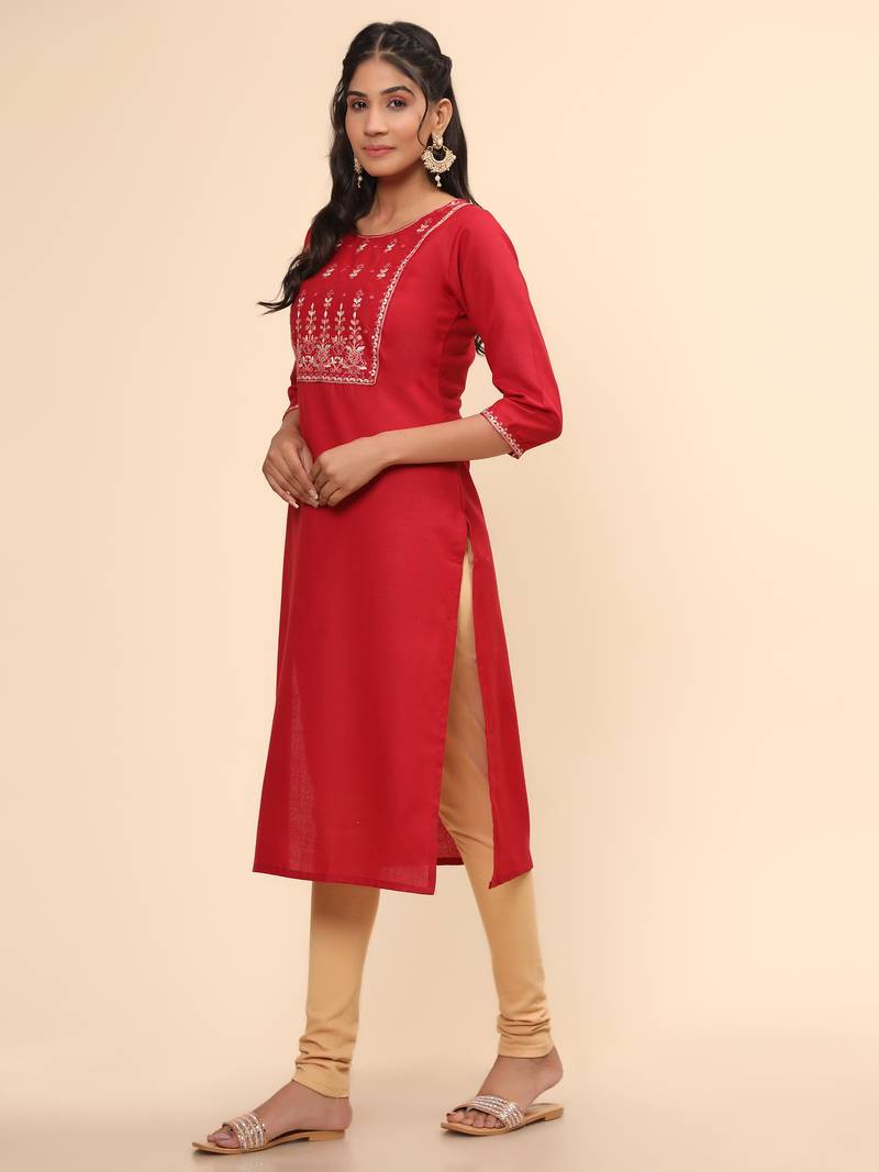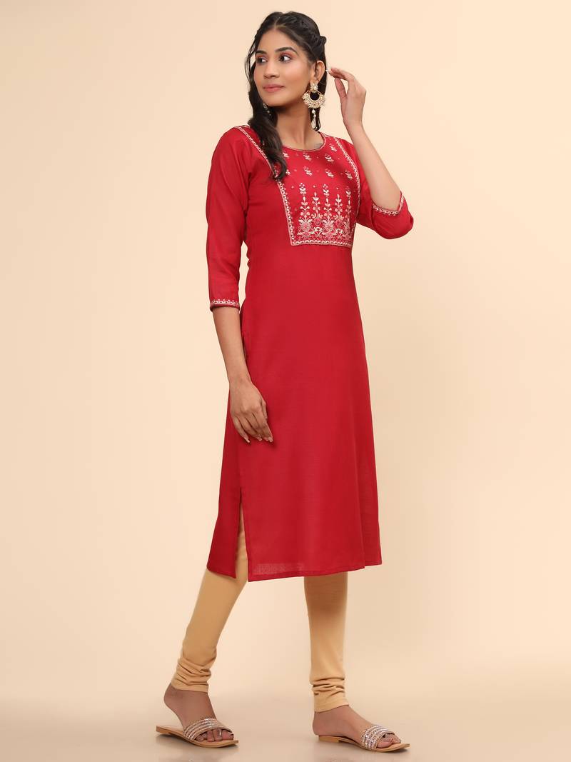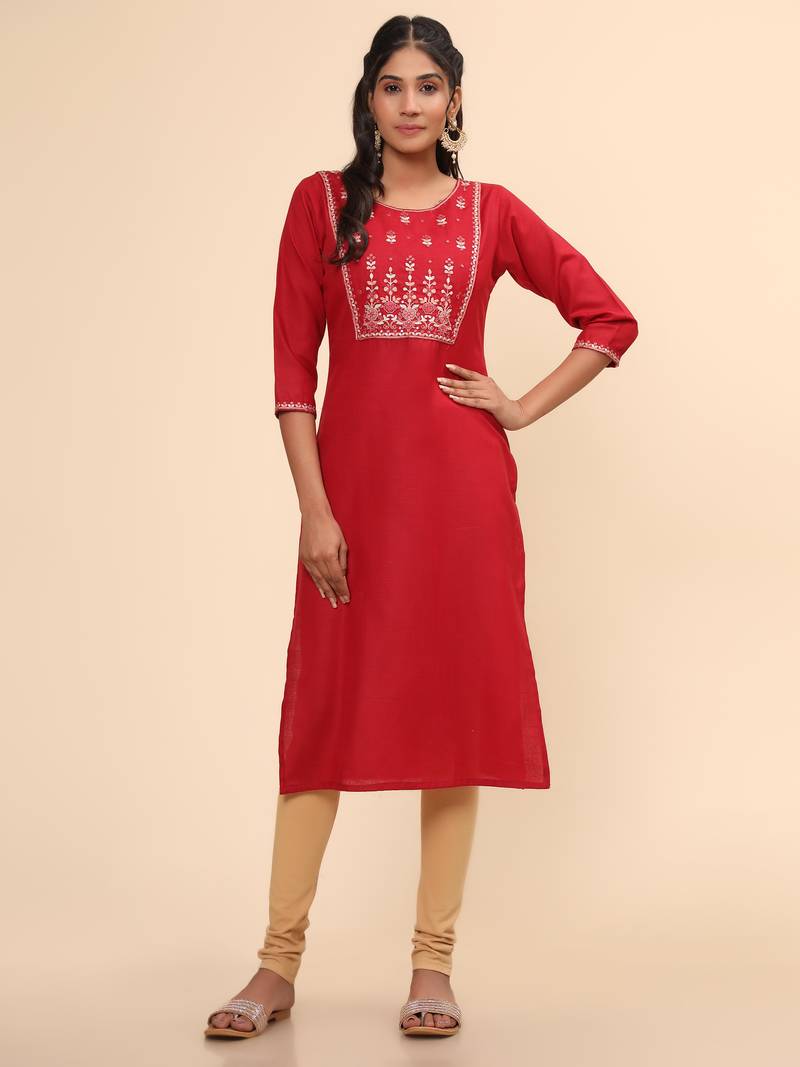 | Product Name | Vbuyz Women's Embroidered Straight Cotton Blend Red Stitched Kurta | |
