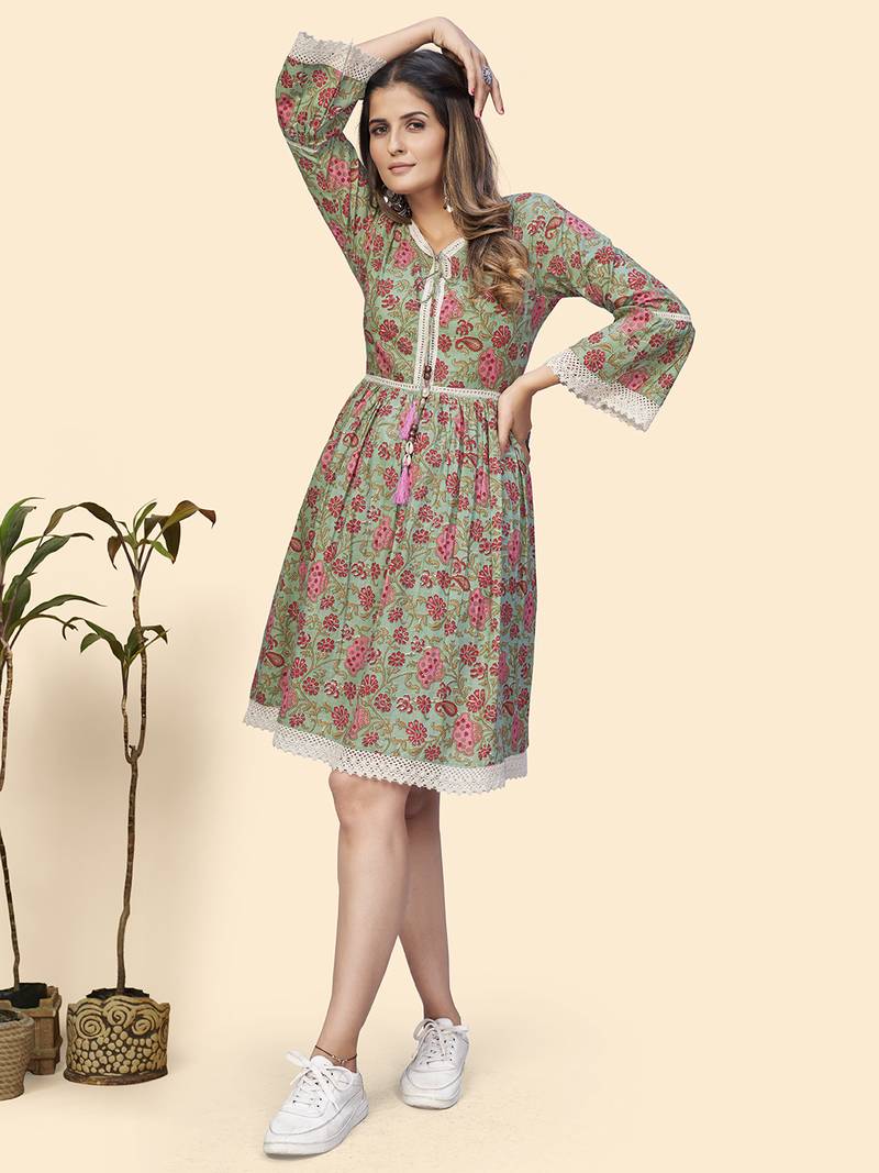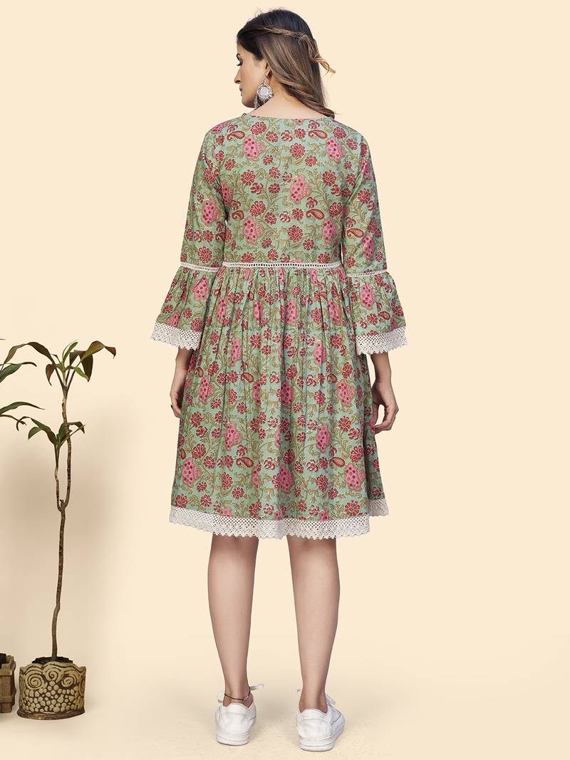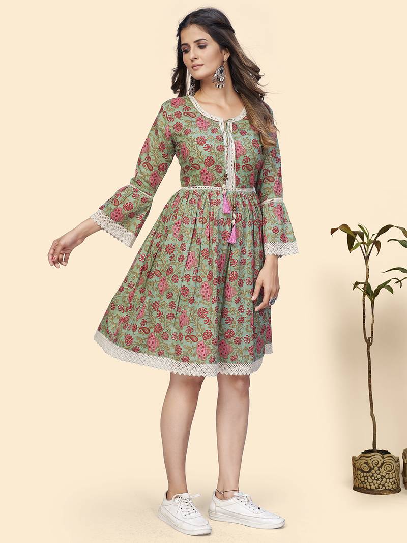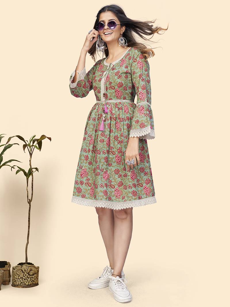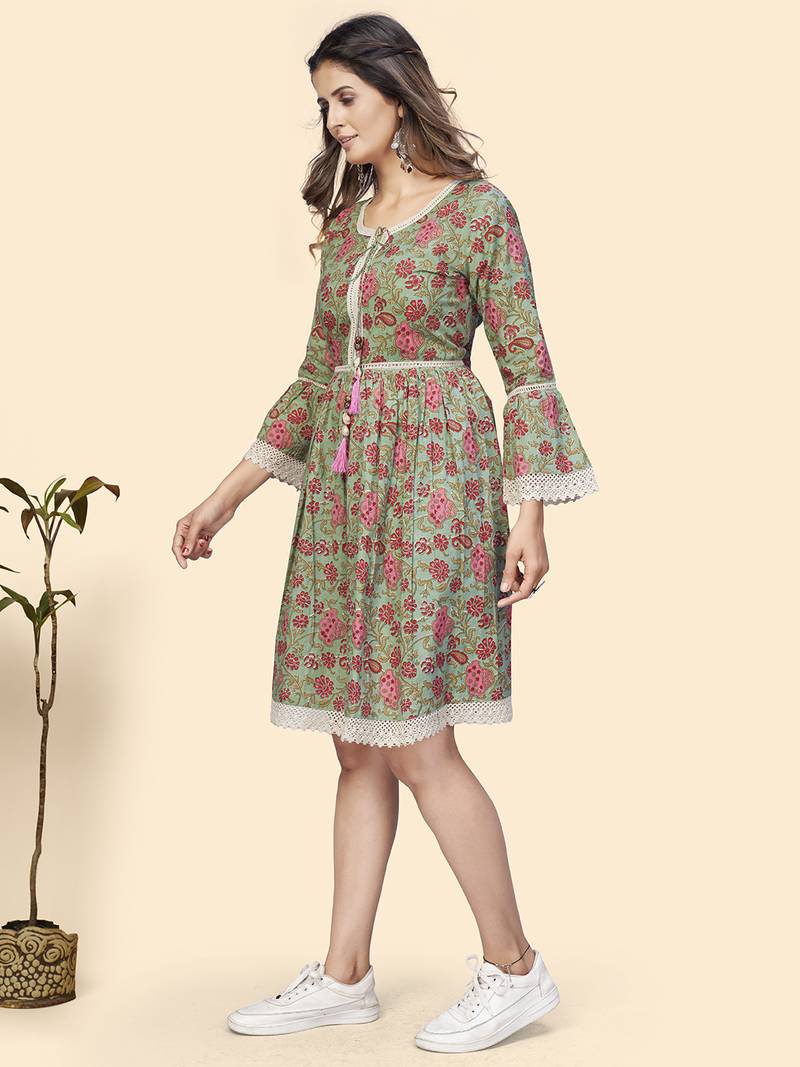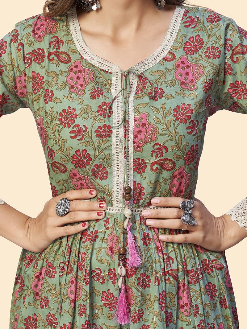 | Product Name | Vbuyz Women's Floral Print Flared Cotton Sea Green Stitched Kurti | |