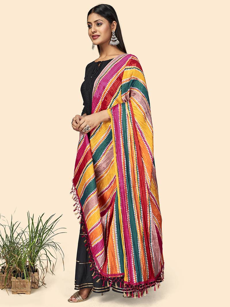 Vbuyz women's silk multicolor leheriya printed dupatta