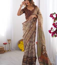 | Product Name | Beige & Brown Handloom Cotton Saree With Mythical Kalamkari Pallu And Elephant Motifs | |