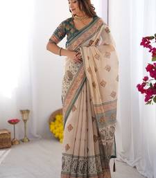 | Product Name | Beige Handloom Cotton Saree With Buti Print, Mandala Motifs & Peacock Pallu | |