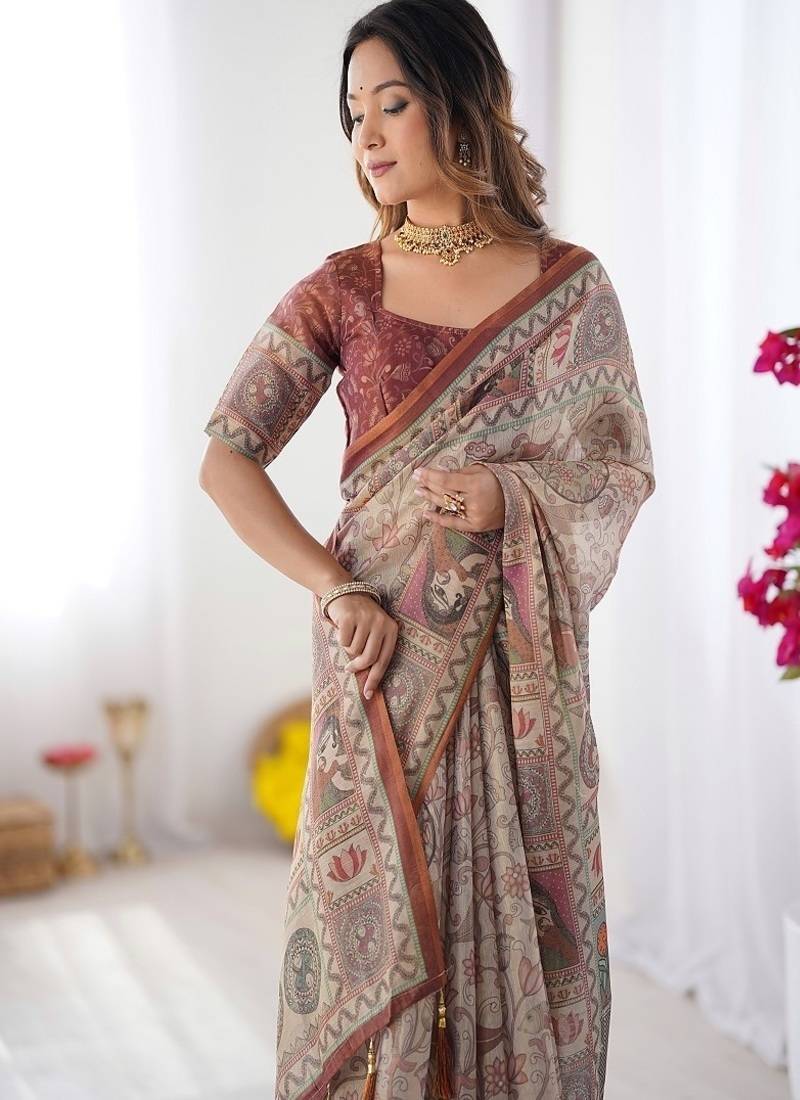 | • | Saree | : | Color- Beige / Fabric- Linen |