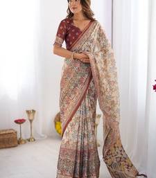 | Product Name | Beige & Maroon Handloom Cotton Saree With Multicolor Floral Print And Majestic Bird Art Pallu | |