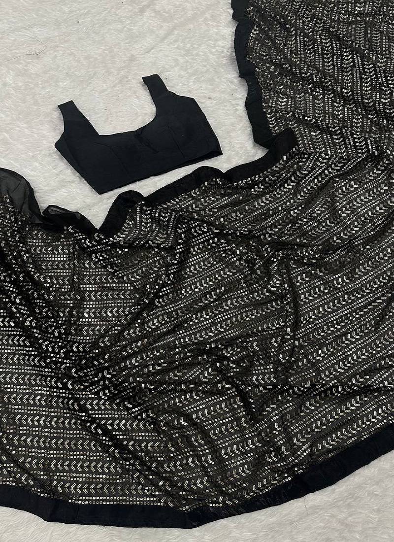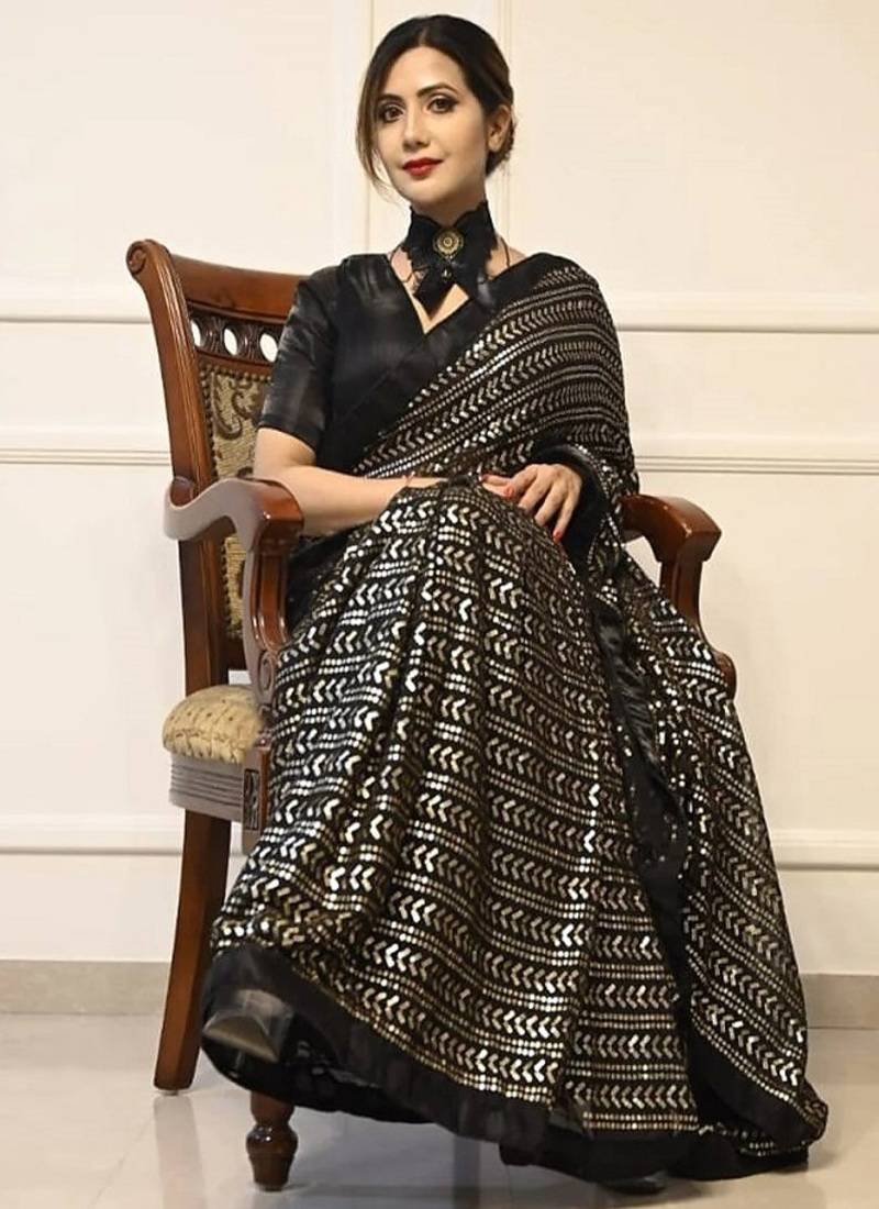 | Product Name | Black Elegant Georgette Sequin Work Saree With Banglori Satin Blouse | |