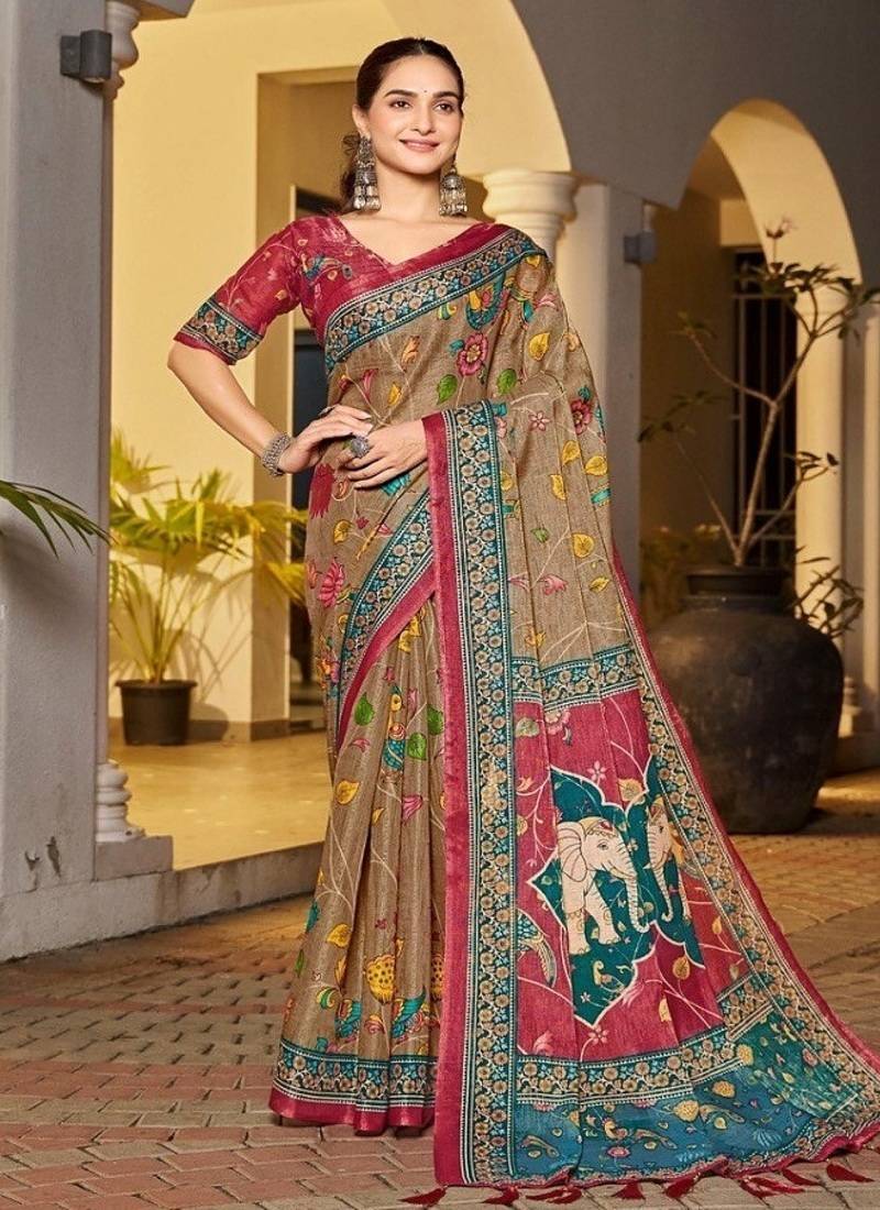 | • | Saree | : | Color- Beige / Fabric- Linen |