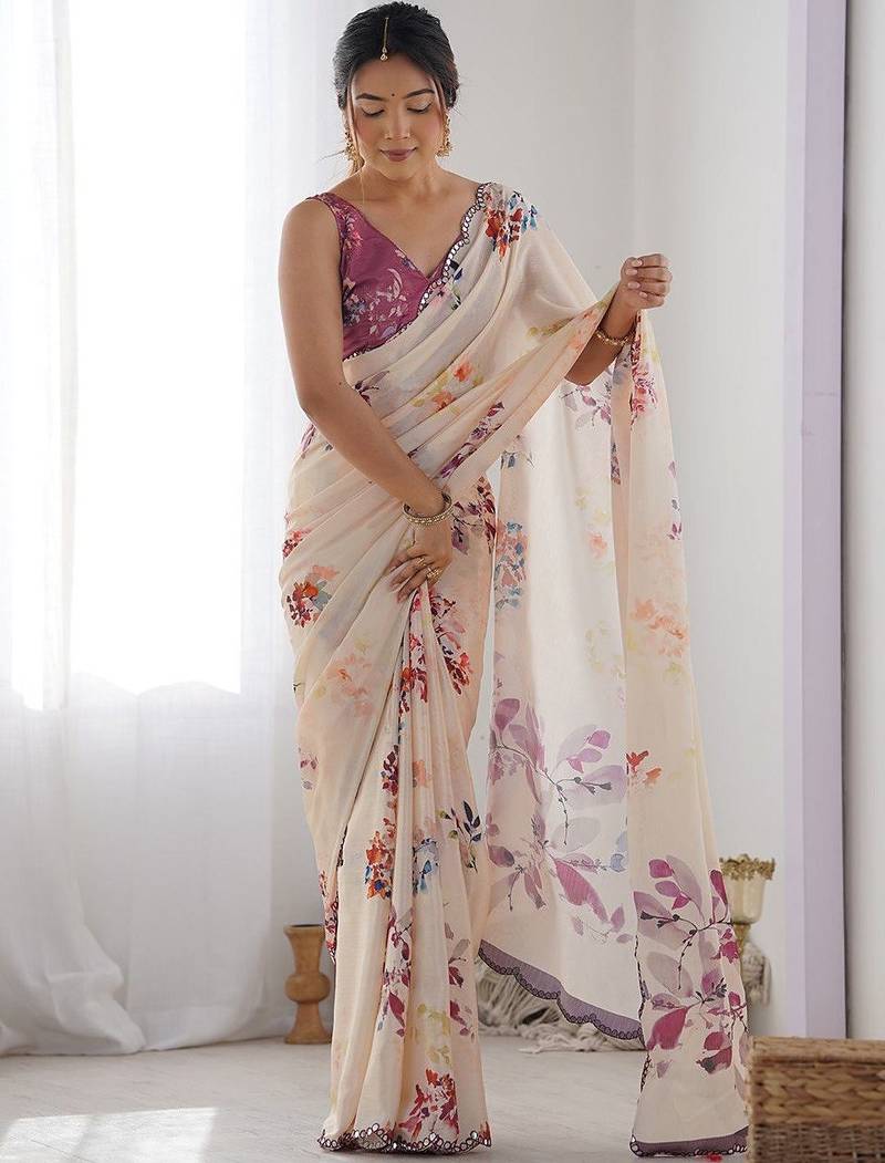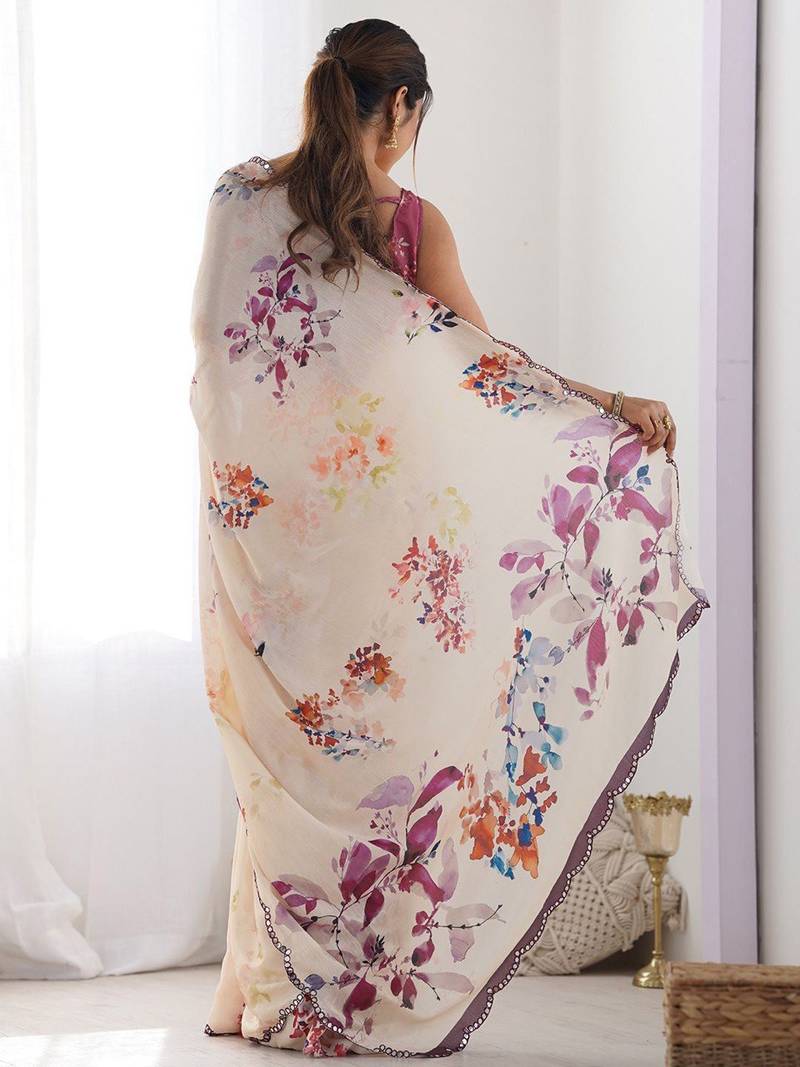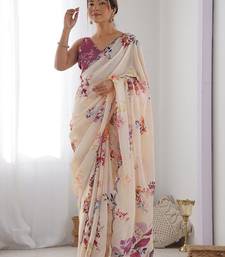 Light pink digital printed georgette saree set
