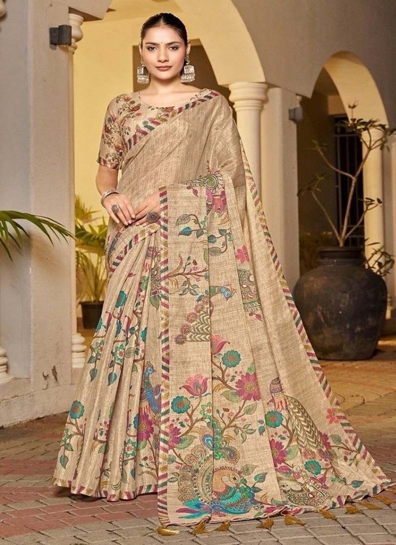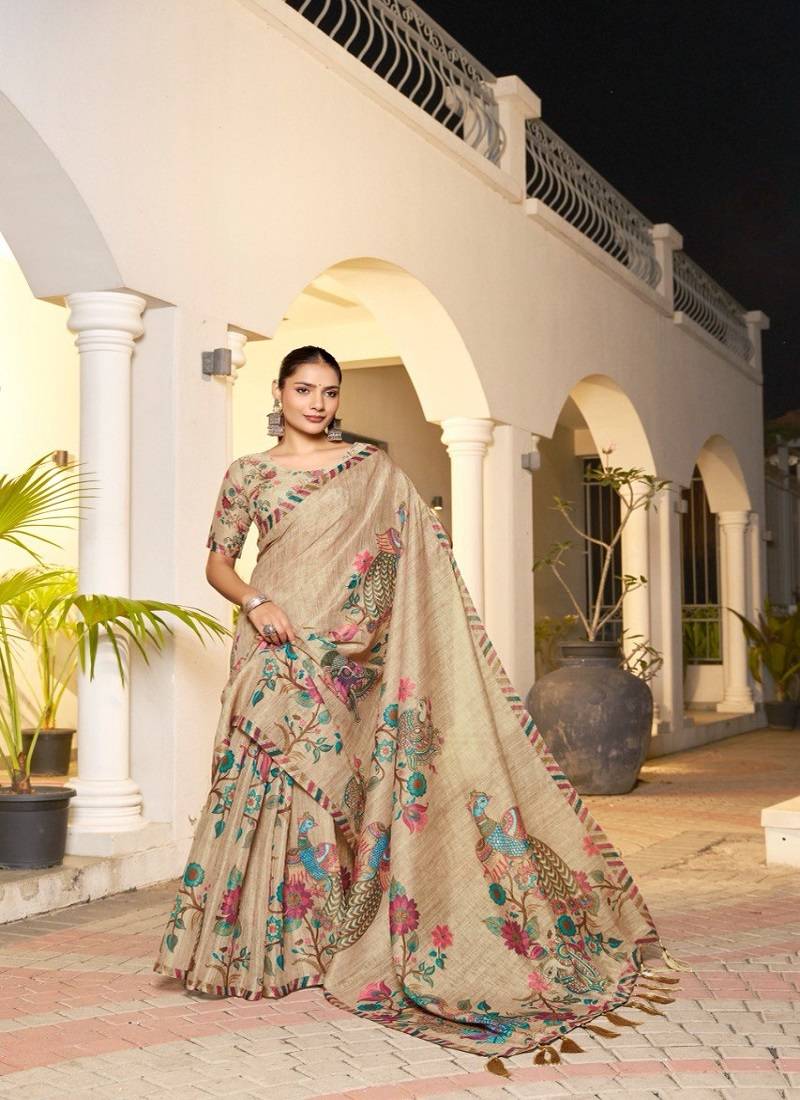| • | Saree | : | Color- Beige / Fabric- Linen |