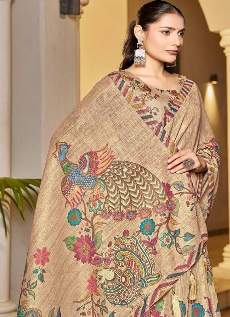 | Product Name | Premium Handloom Beige Peacock & Floral Print Saree With Teal Pallu | |