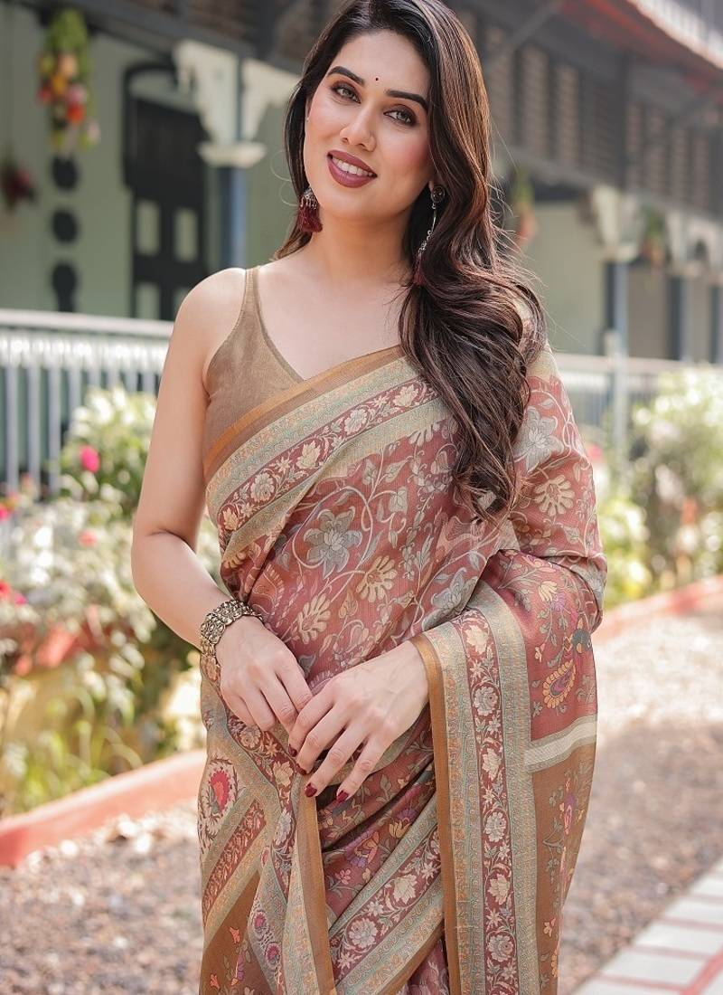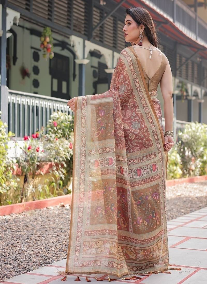 | Product Name | Rust And Gold Handloom Cotton Linen Saree With Floral Motifs And Rich Zari Border | |