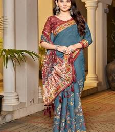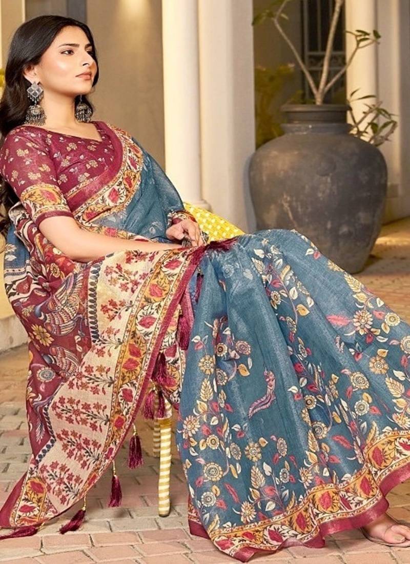 | • | Saree | : | Color- Teal Blue / Fabric- Linen |