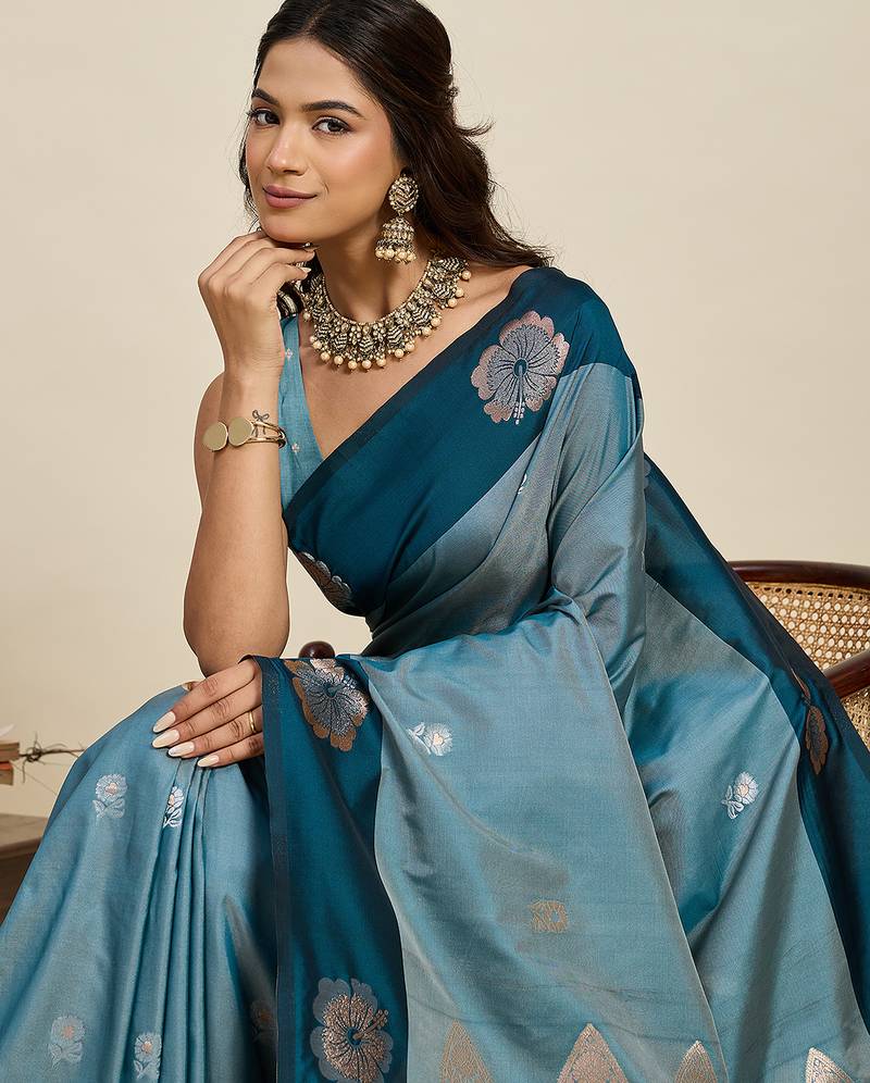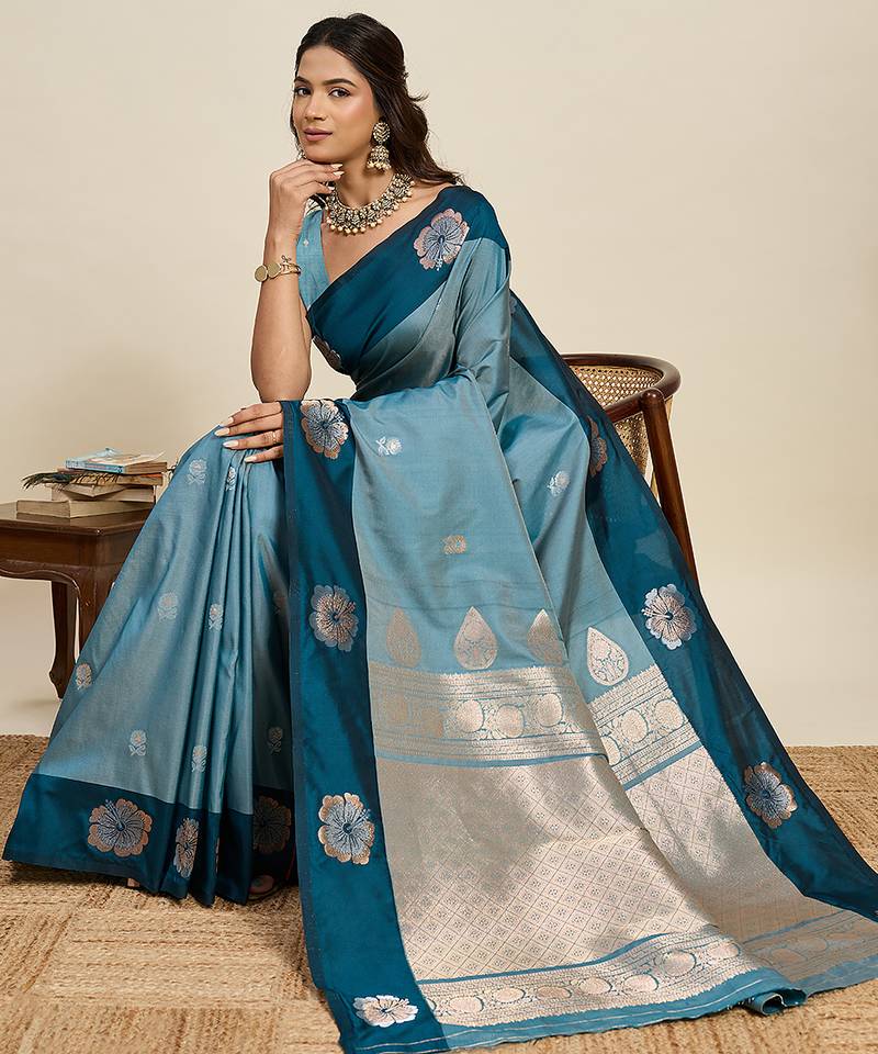 | • | Saree | : | Color- Turquoise / Fabric- Art Silk |
