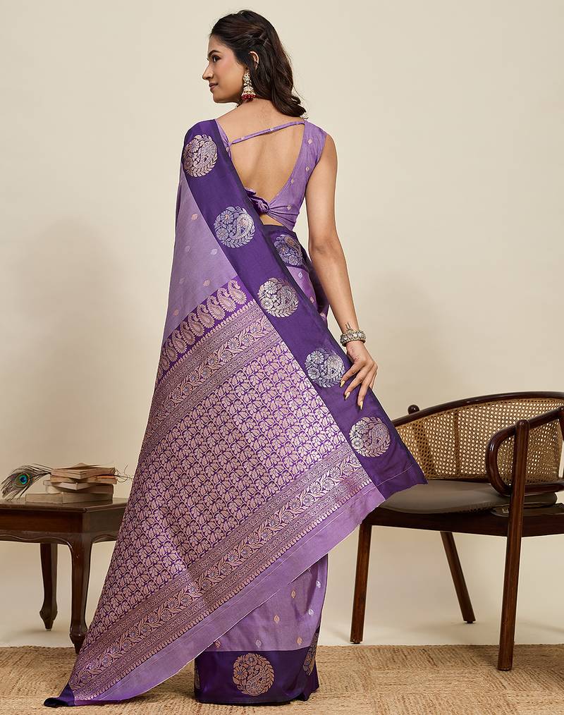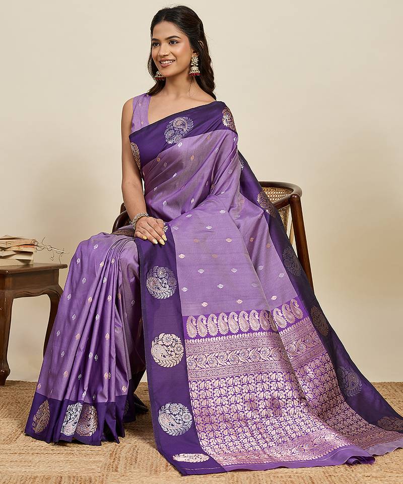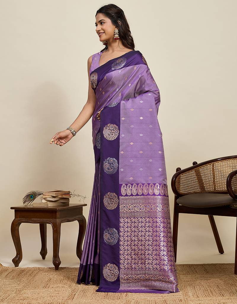 Soft litchi art silk banarasi art silk jacquard saree (aamrapali-03-lavender)
