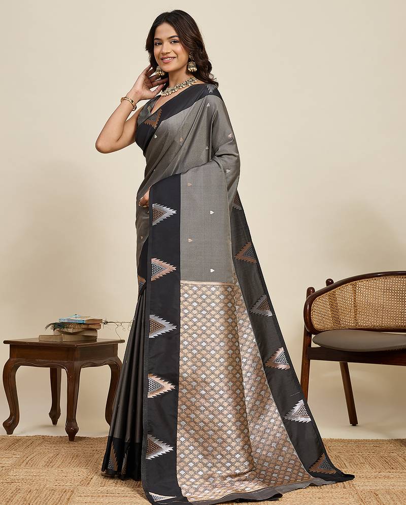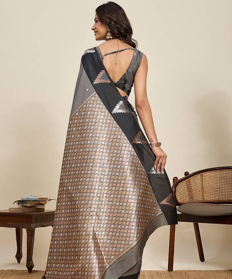 Soft litchi art silk banarasi art silk jacquard saree (amrapali-01-black)