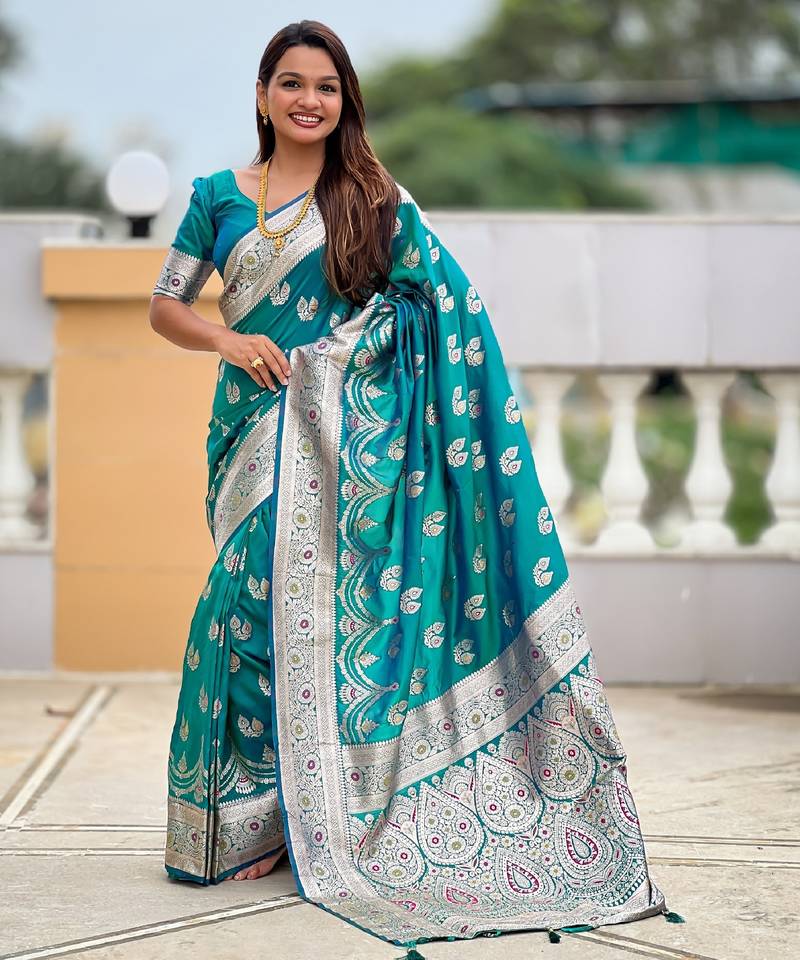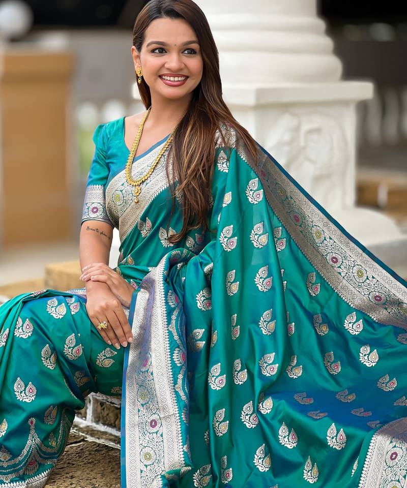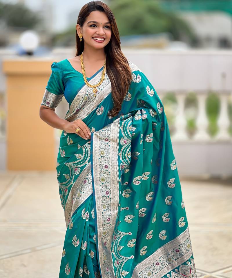 | • | Saree | : | Color- Turquoise / Fabric- Art Silk |