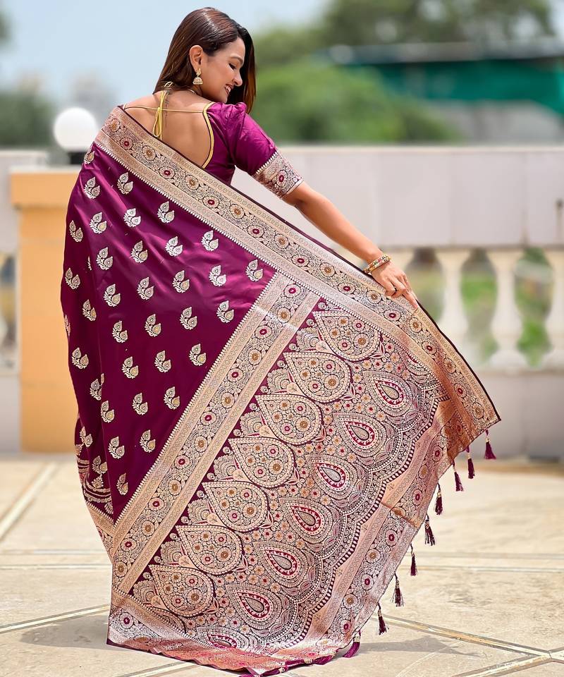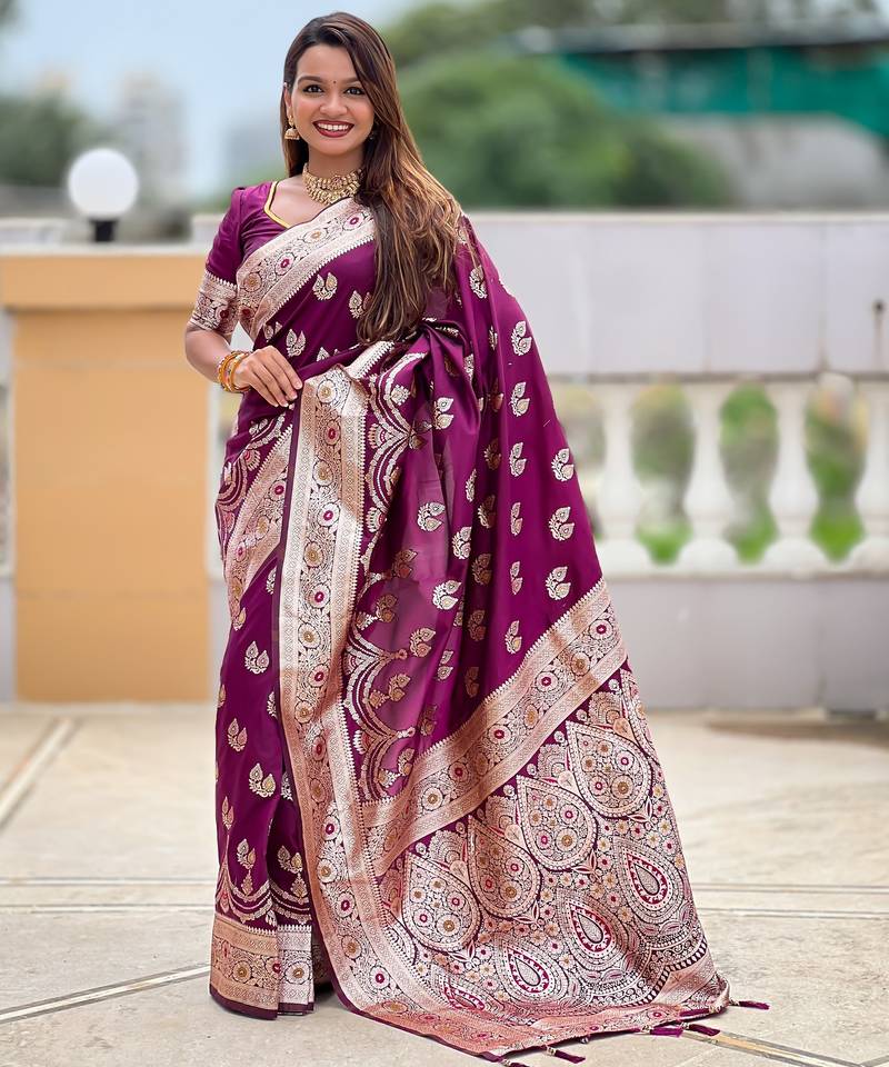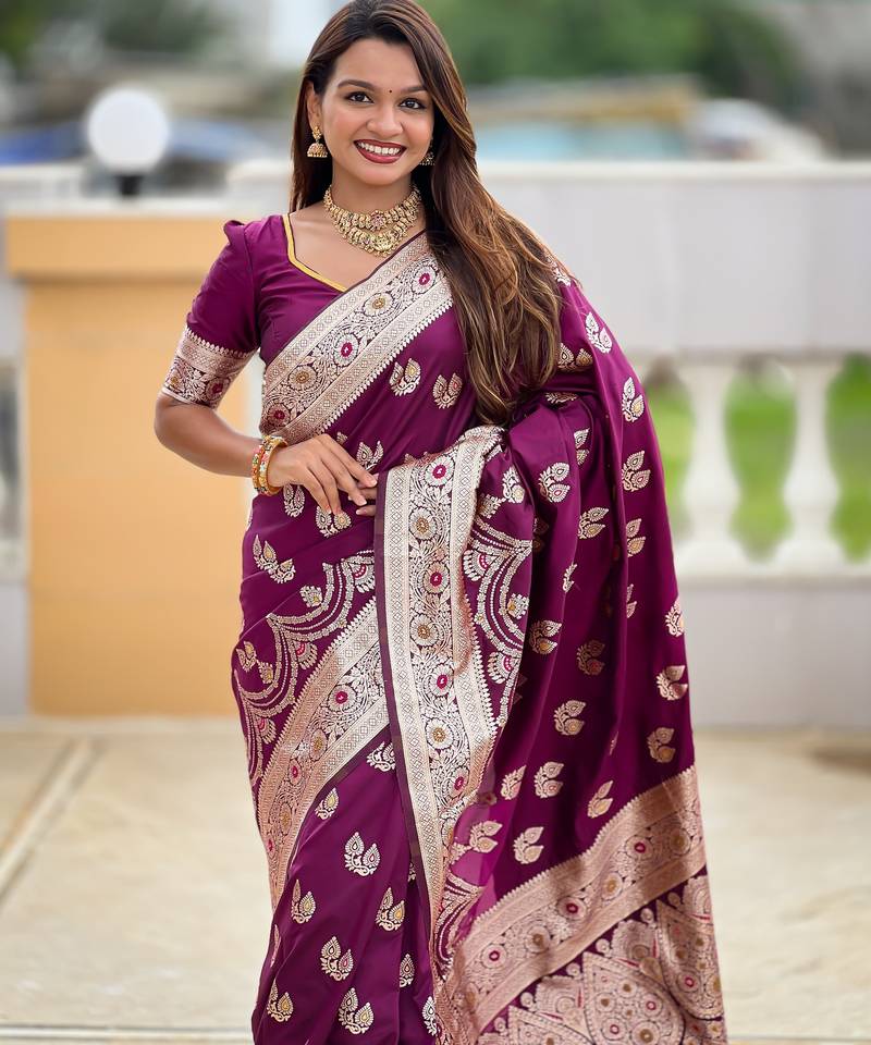 Soft litchi art silk banarasi art silk jacquard saree (banarasi-15-wine)