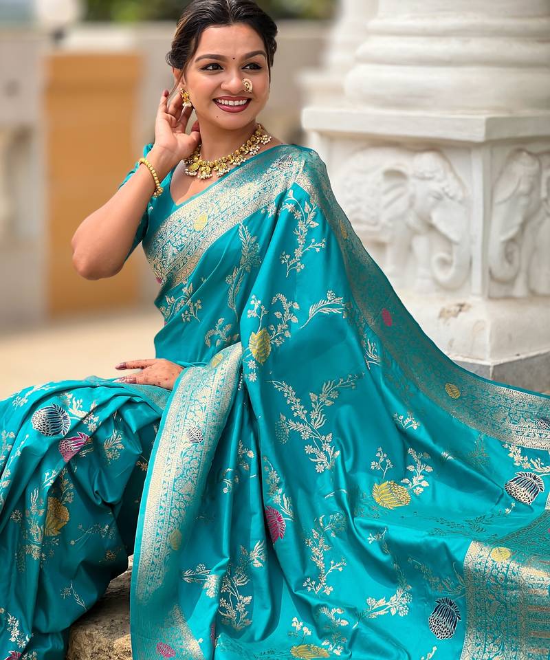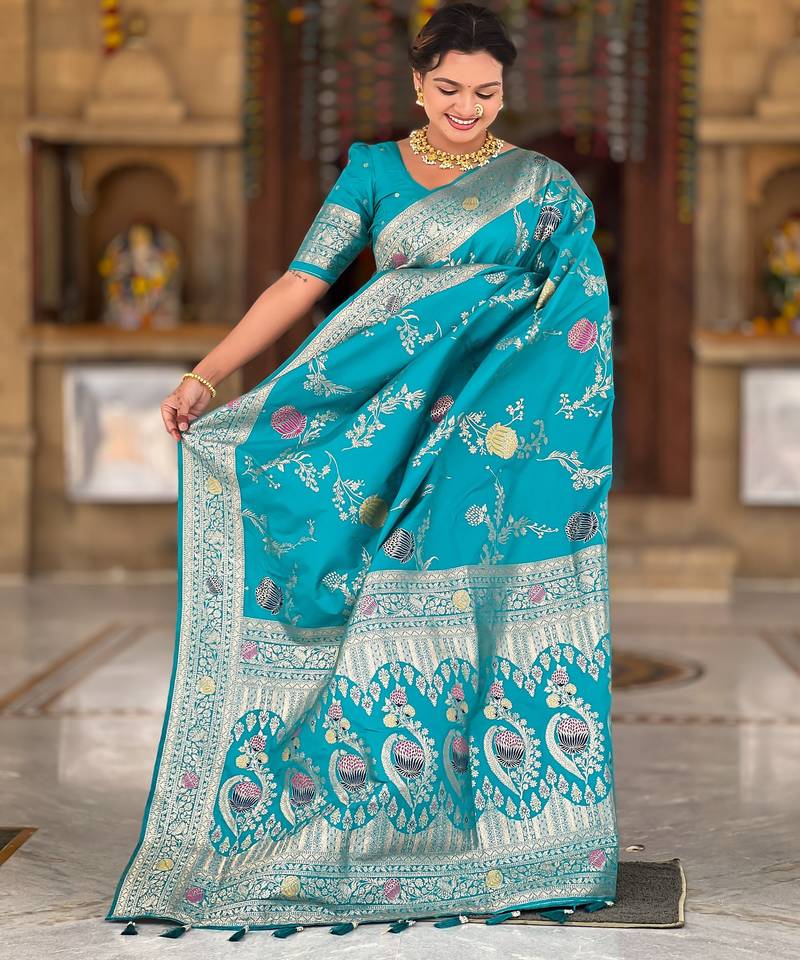 | • | Saree | : | Color- Turquoise / Fabric- Art Silk |
