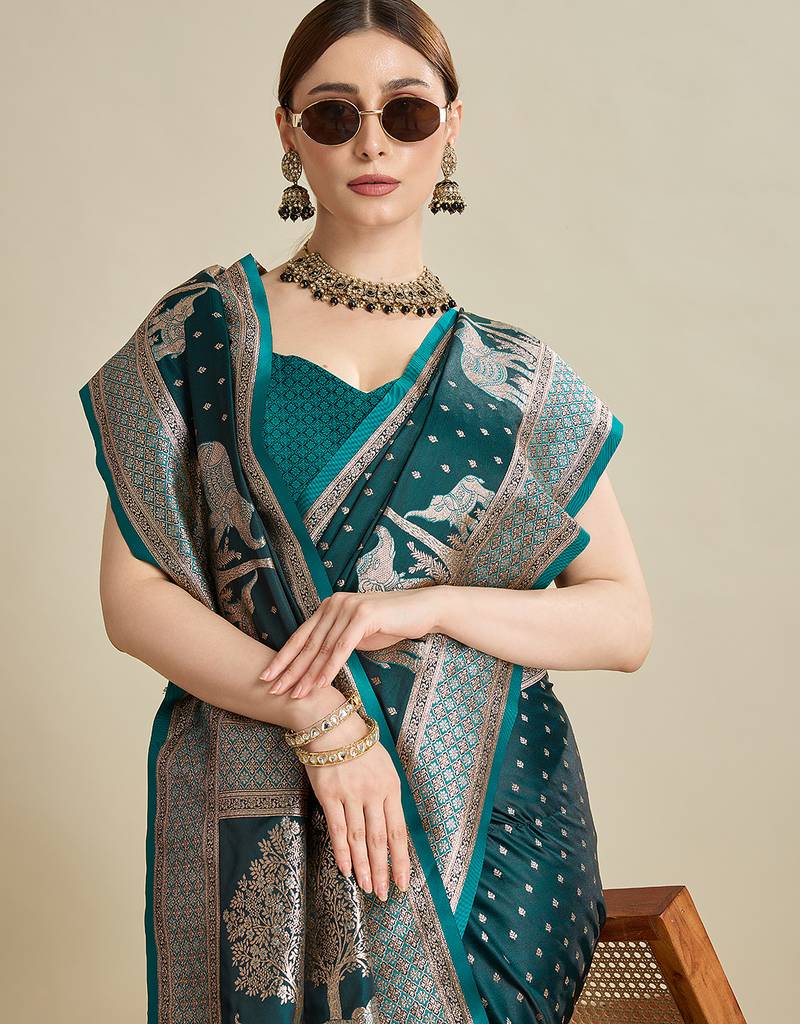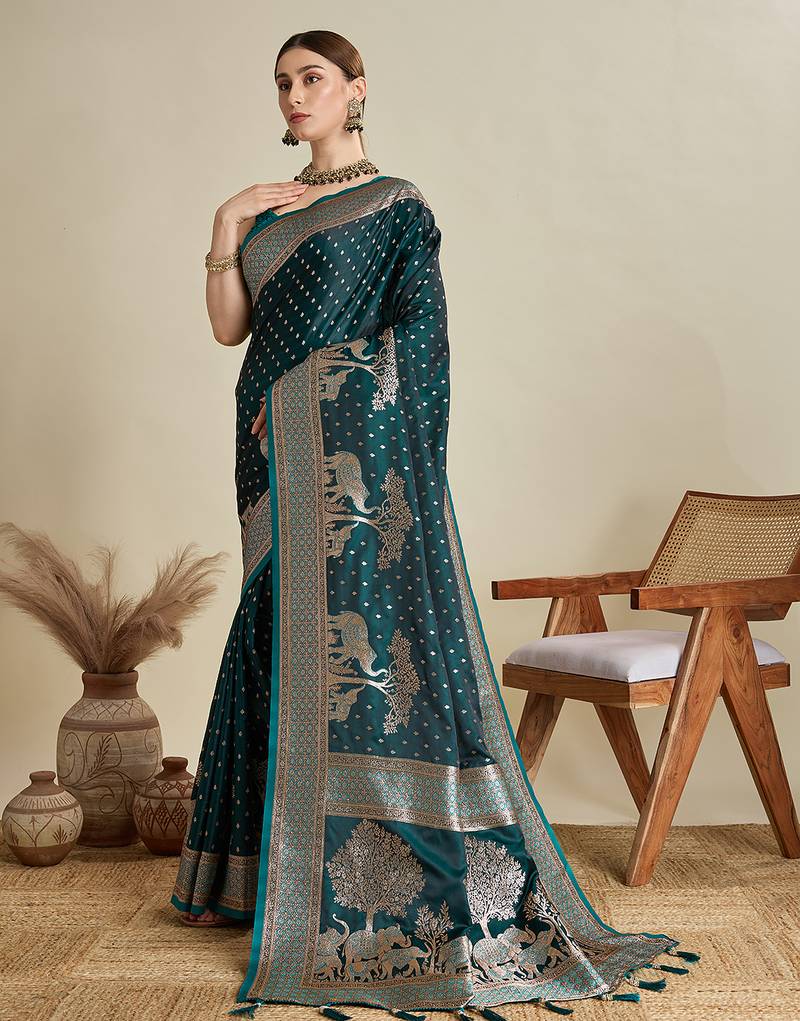 Soft litchi silk banarasi silk jacquard saree (str-rajgharana-05-rama)