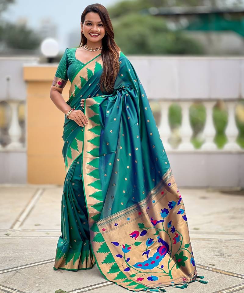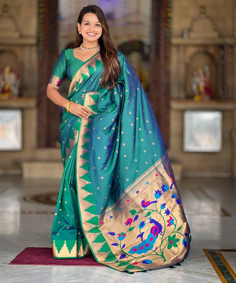 Soft litchi silk banarasi silk jacquard saree (temple-paithani-rama)