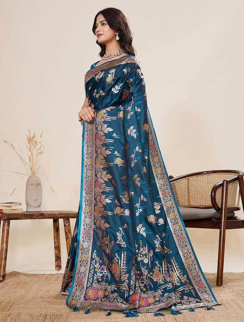 | • | Saree | : | Color- Turquoise / Fabric- Art Silk |
