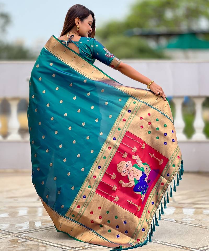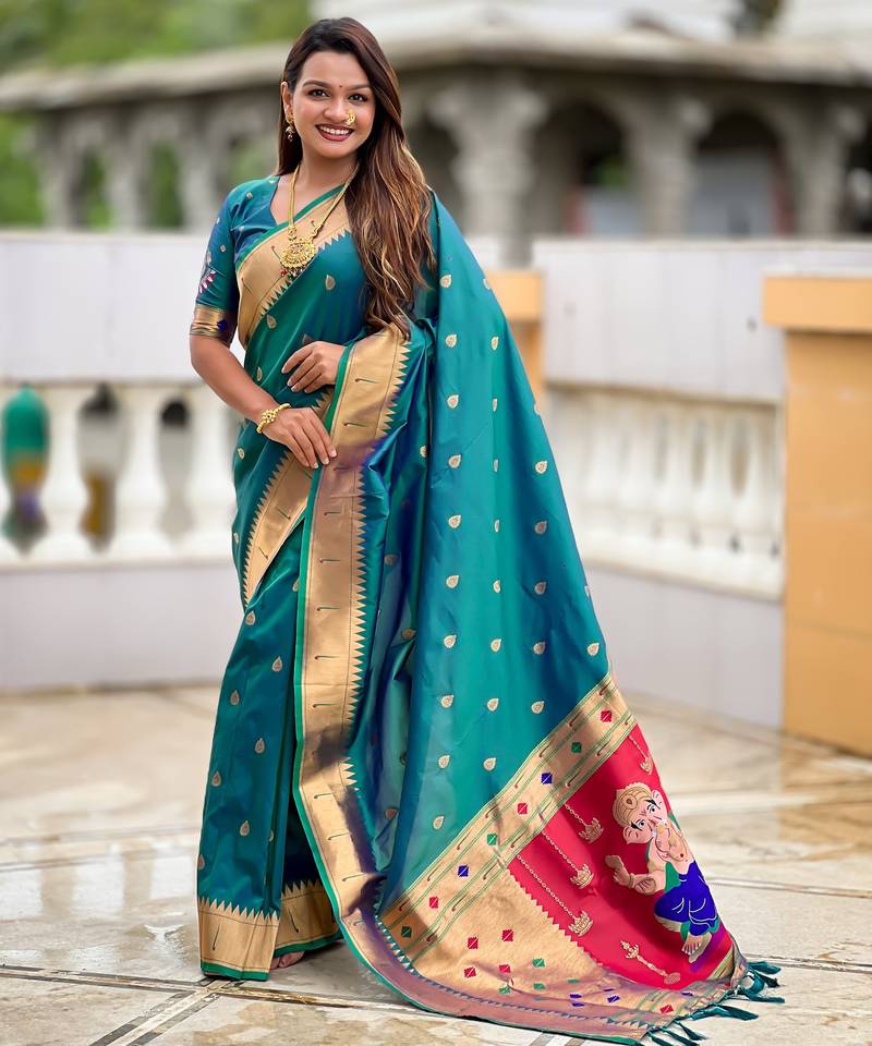 Soft litchi silk paithani jacquard saree (ganpati-paithani-rama)