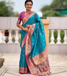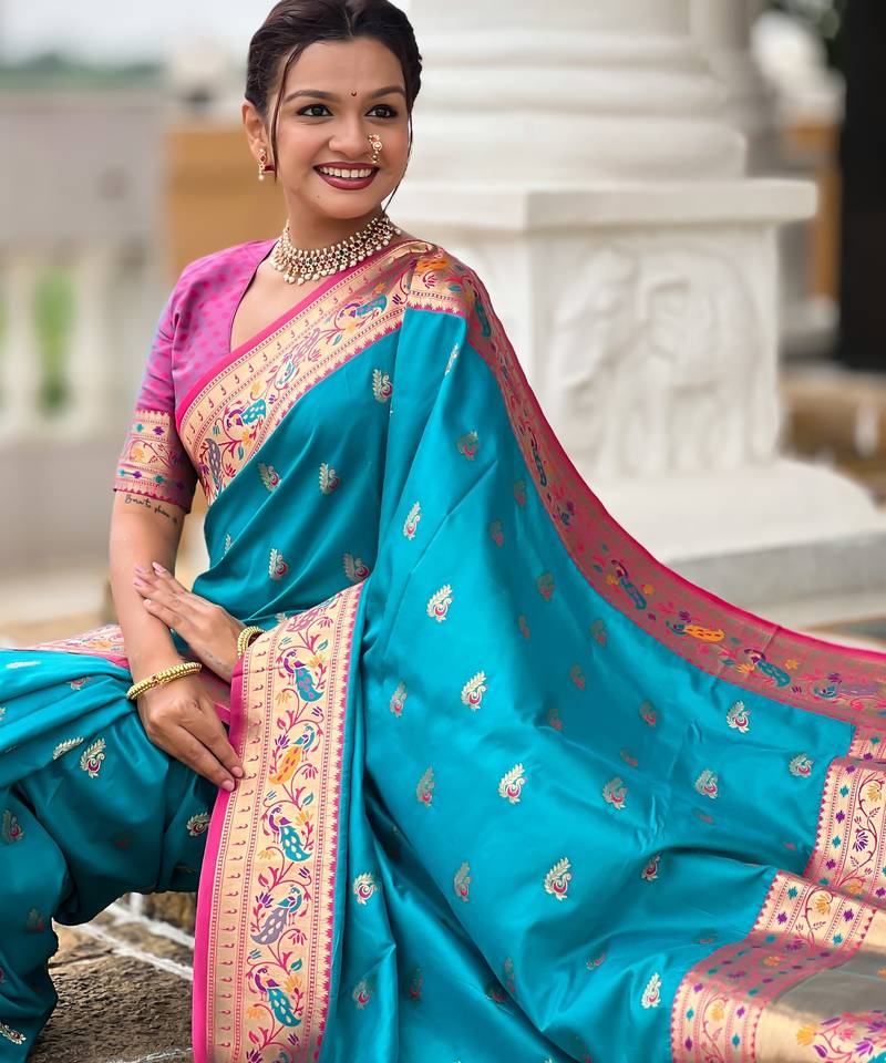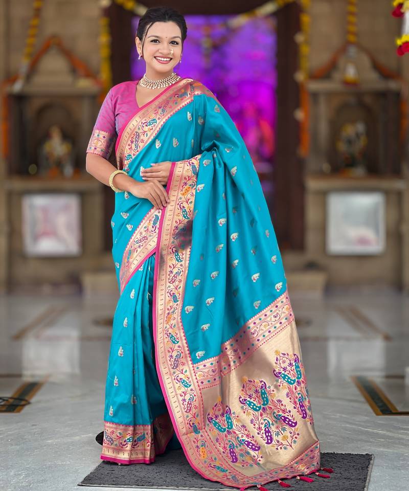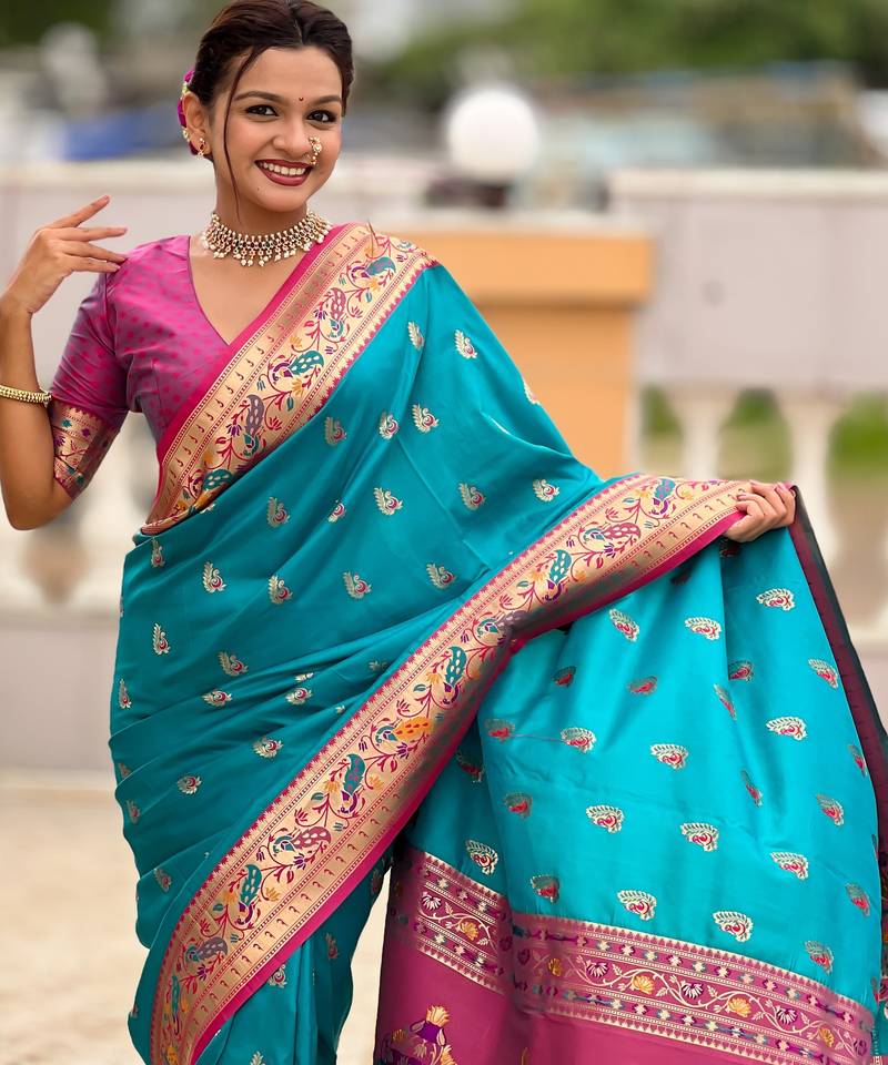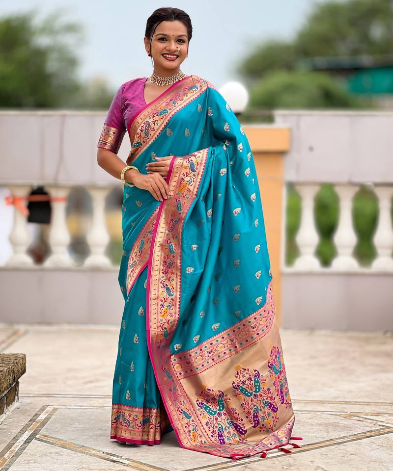 Soft litchi silk paithani jacquard saree (royal-paithani-1-firozi)