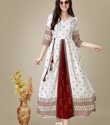 White printed rayon ethnic anarkali gown stitched