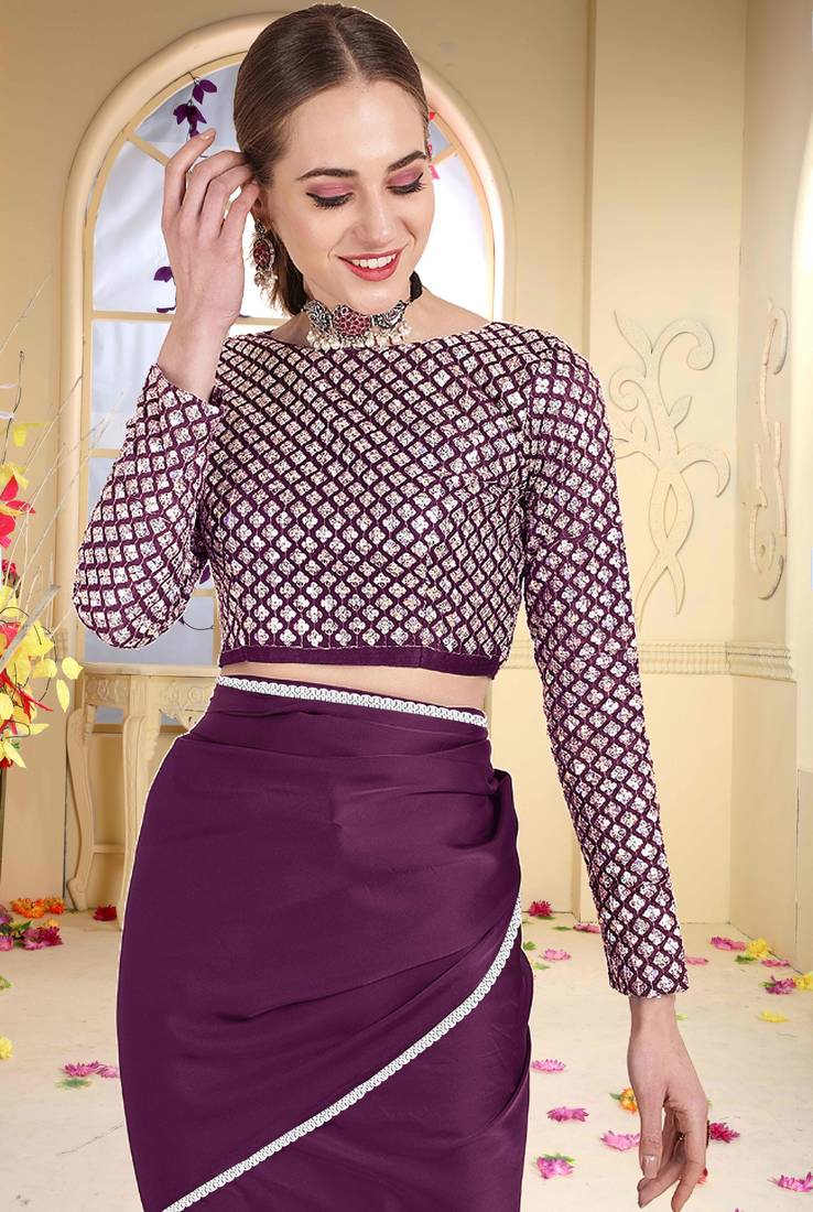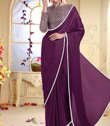 Wine plain georgette saree with blouse