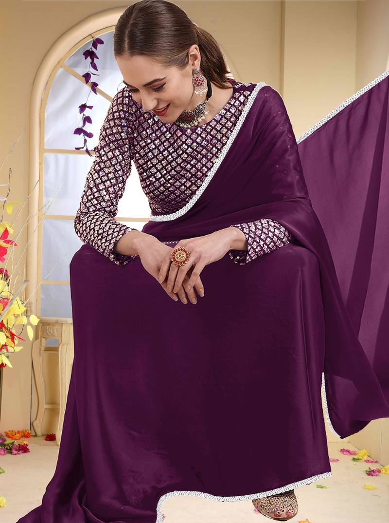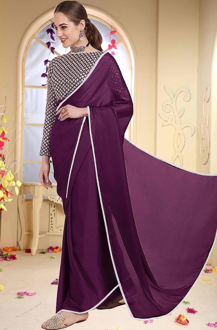 Product Name Wine Plain Georgette Saree With Blouse