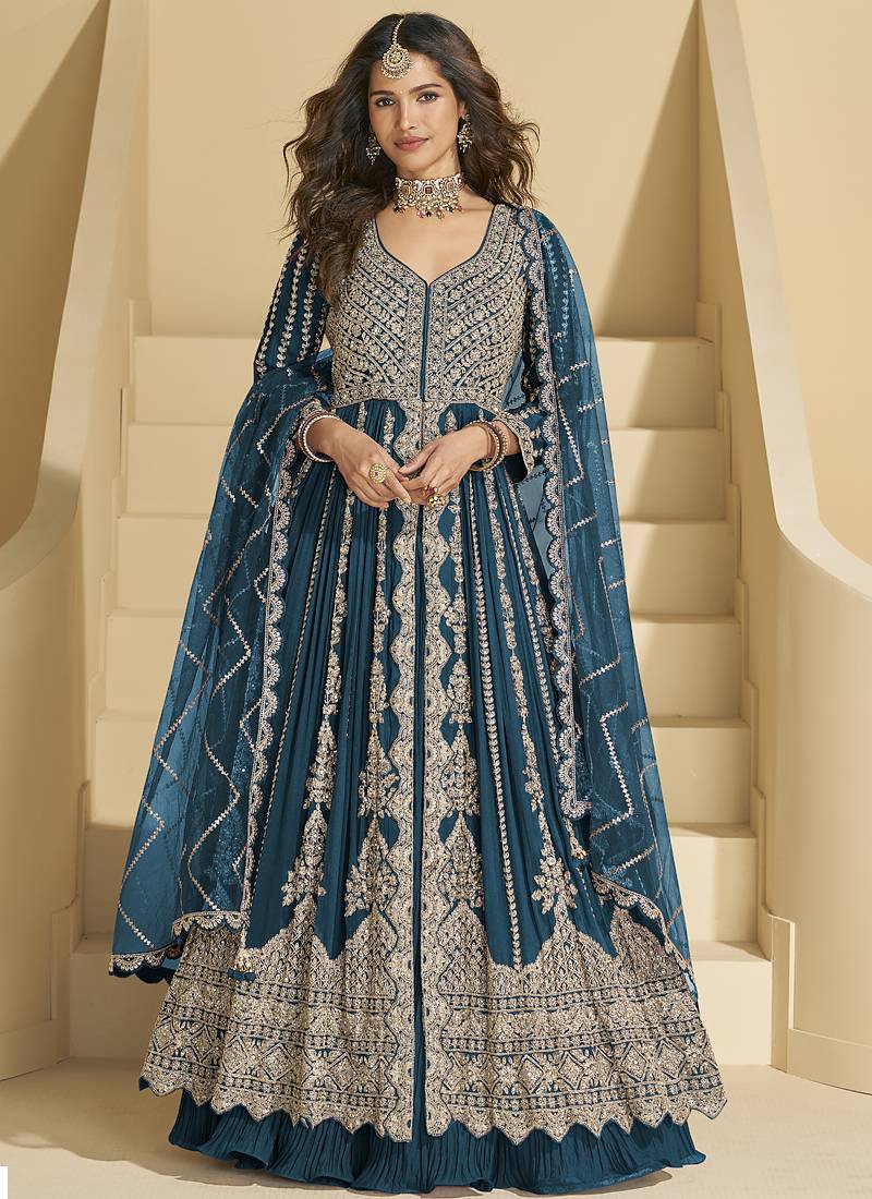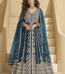 | Product Name | Aqua Blue Chinon Silk Embroidered Lehenga Style Suit | |