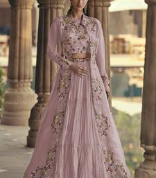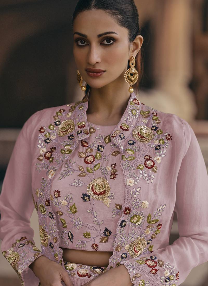 Baby pink chinon silk embroidered ready to wear lehenga with strug