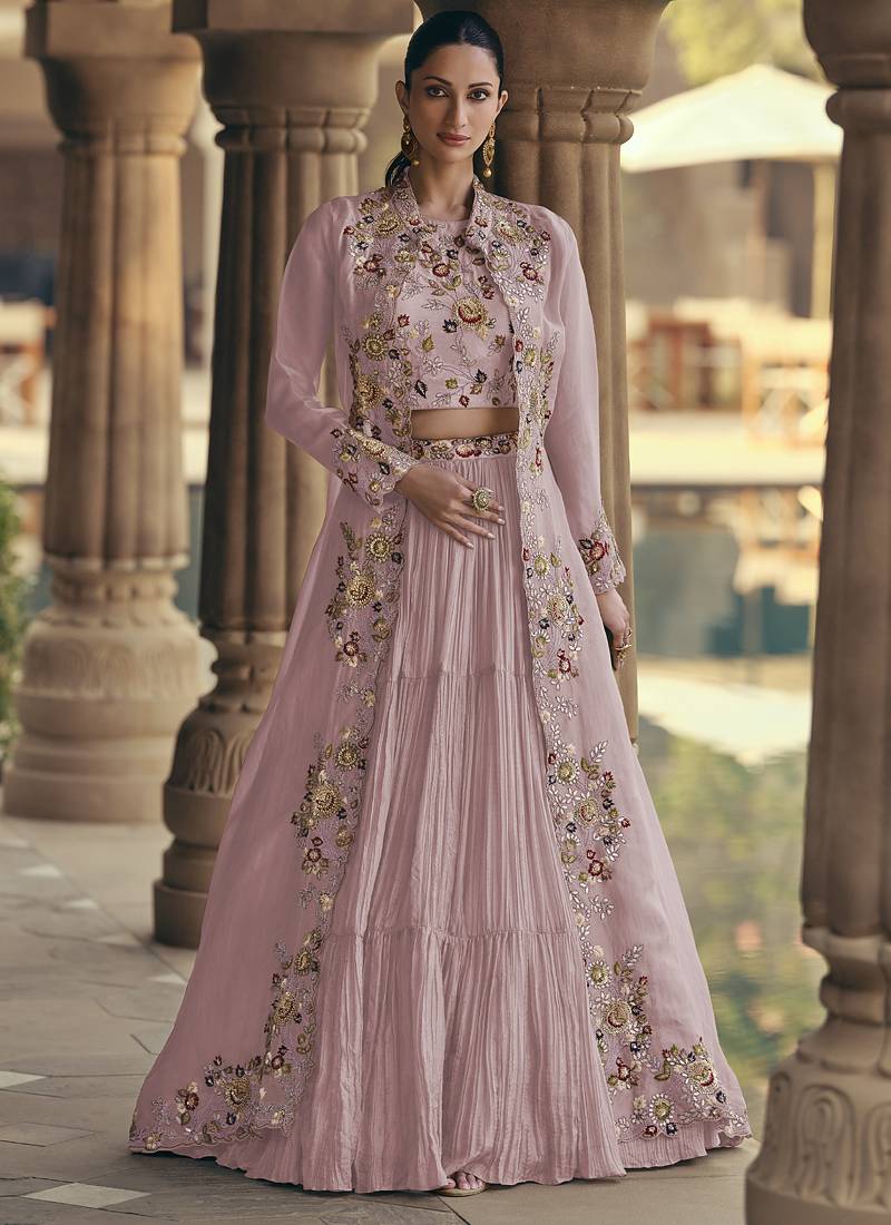 Product Name | Baby Pink Chinon Silk Embroidered Ready To Wear Lehenga With Strug | |