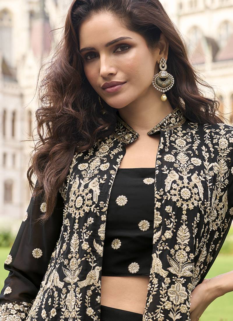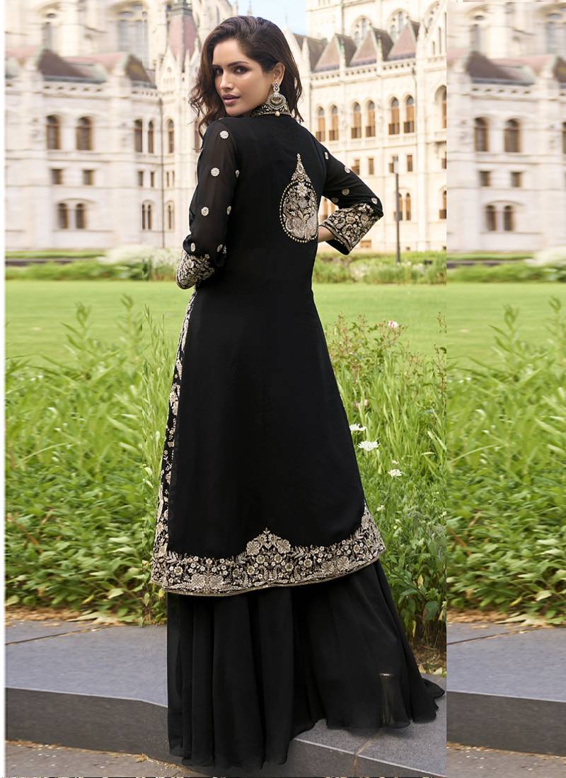 Product Name Black Georgette Embroidered Beads Work Western Plazzo Suit