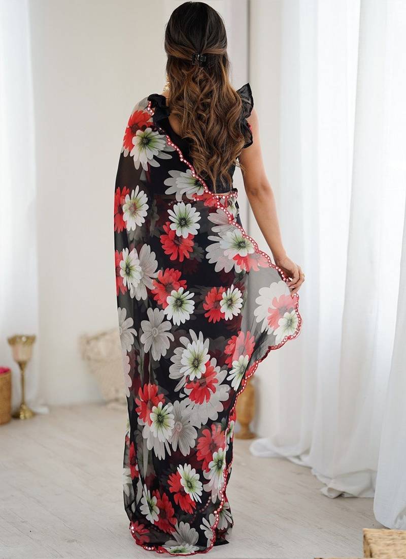| Product Name | Black Georgette Silk Blend Printed Mirror Work Border Designer Saree | |