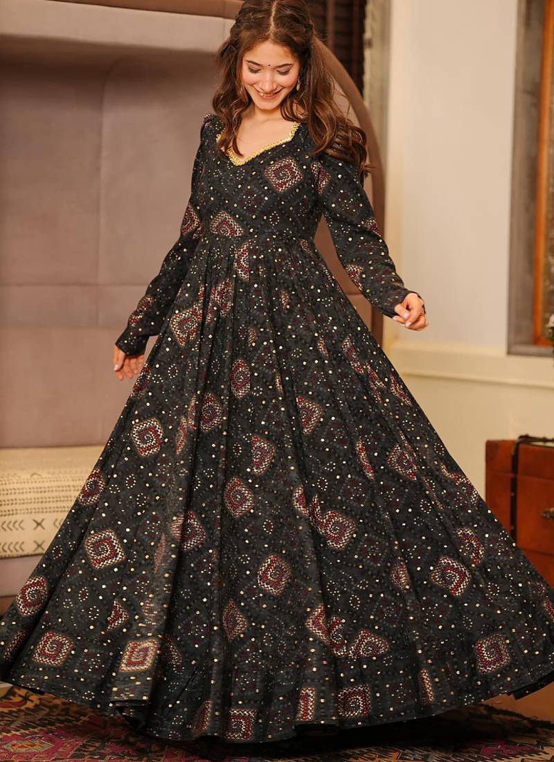 | Product Name | Black Reyon Digital Print Designer Gown For Festive | |