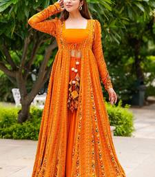 | Product Name | Bright Orange Faux Georgette Koti Style Western Suit | |