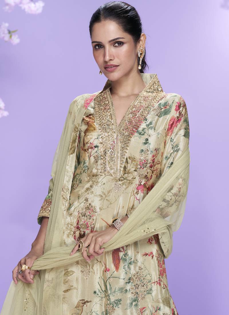 | Product Name | Cream Chinon Silk Digital Embridered Designer Plazzo Suit | |