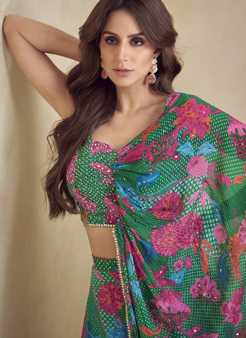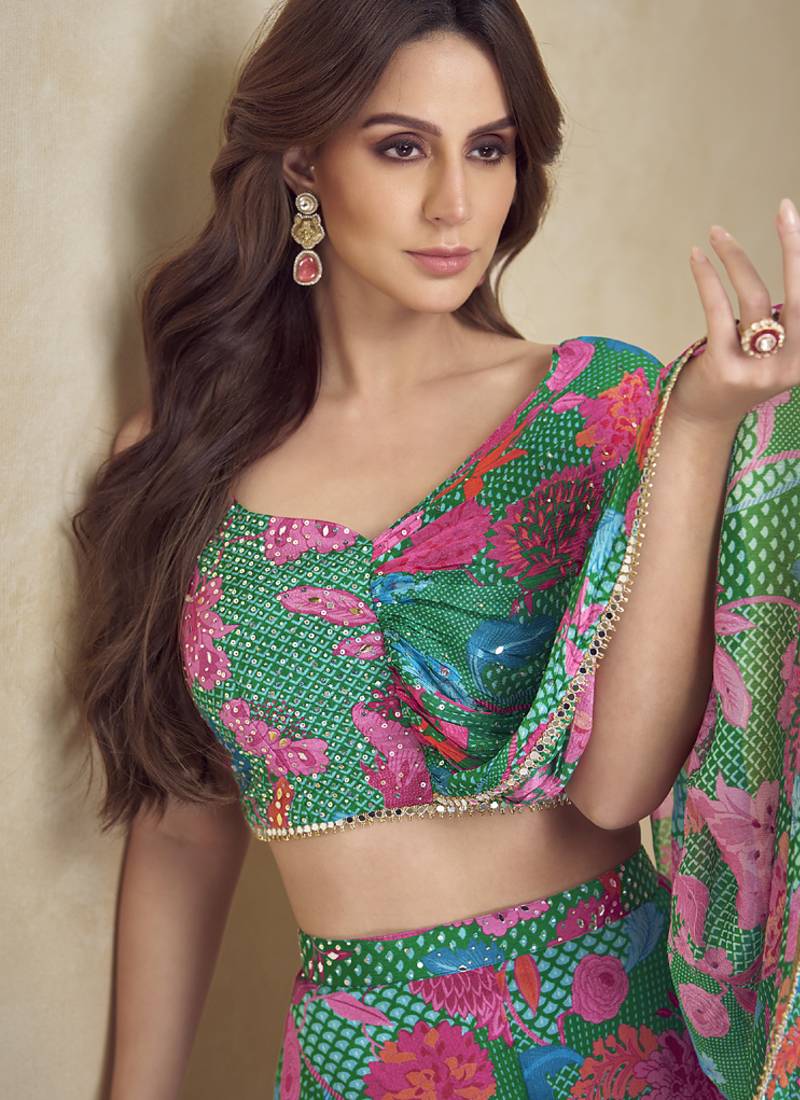 Product Name | Green Chinon Silk Digital Print Western Style Plazzo Suit | |