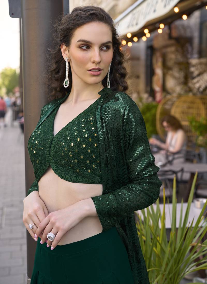 | Product Name | Green Georgette Embroidered Western Style Plazzo Suit | |