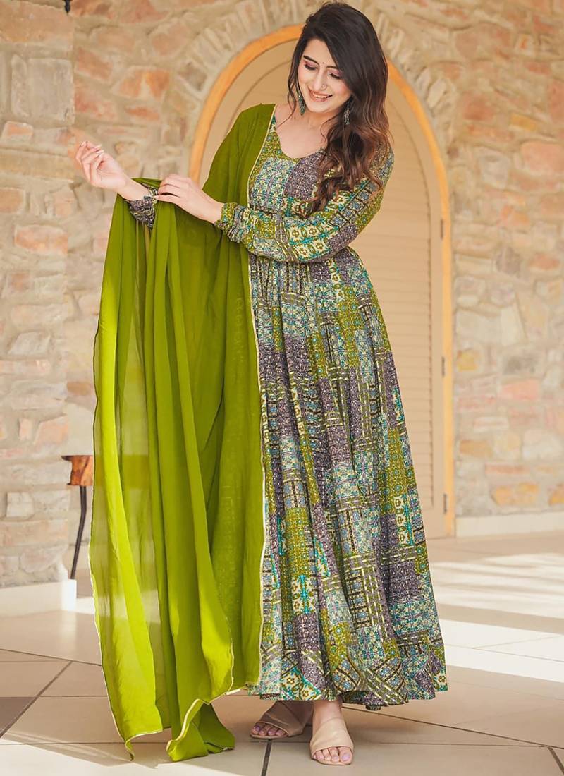 | Product Name | Green Reyon Digital Print Designer Gown For Festive | |